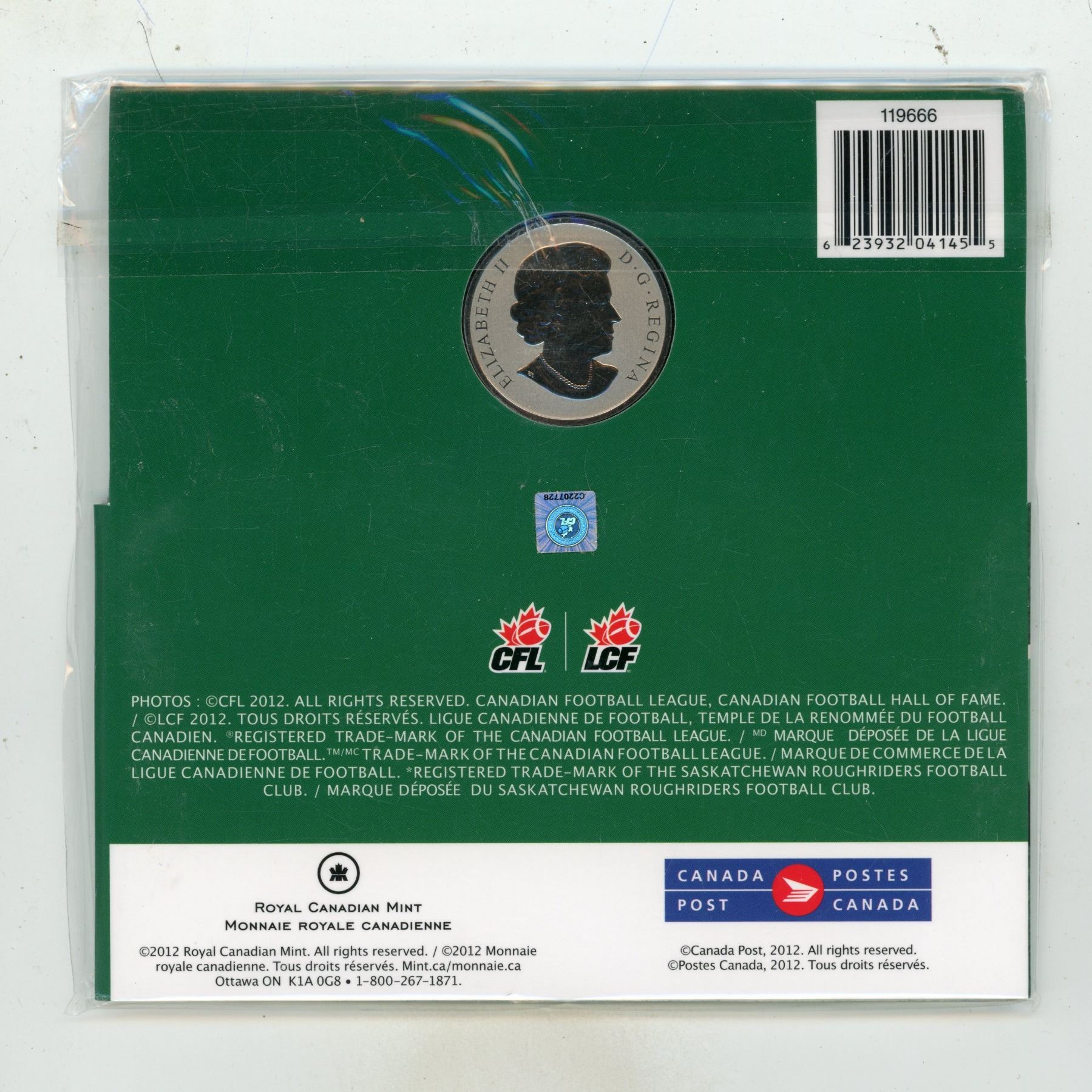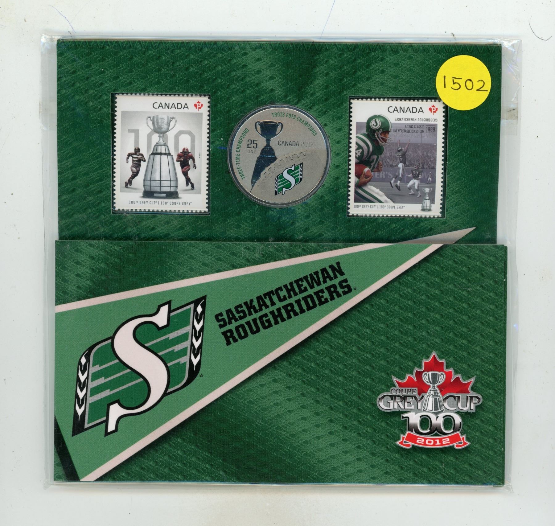 2012 Canada 25 Cent Saskatchewan Rough Riders coin and Stamp set