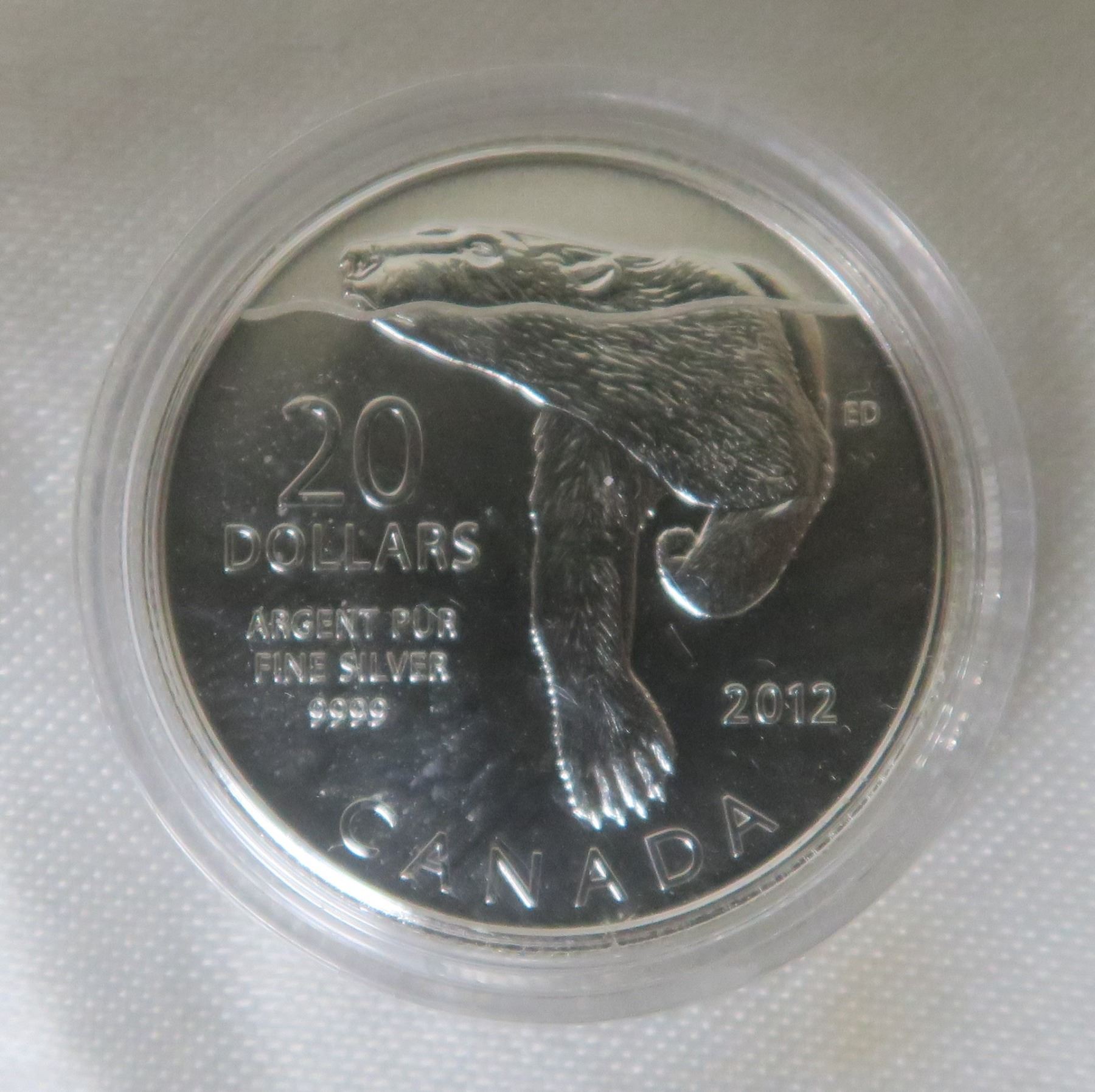 2012 Canada Fine Silver $20 coin, Swimming Polar Bear