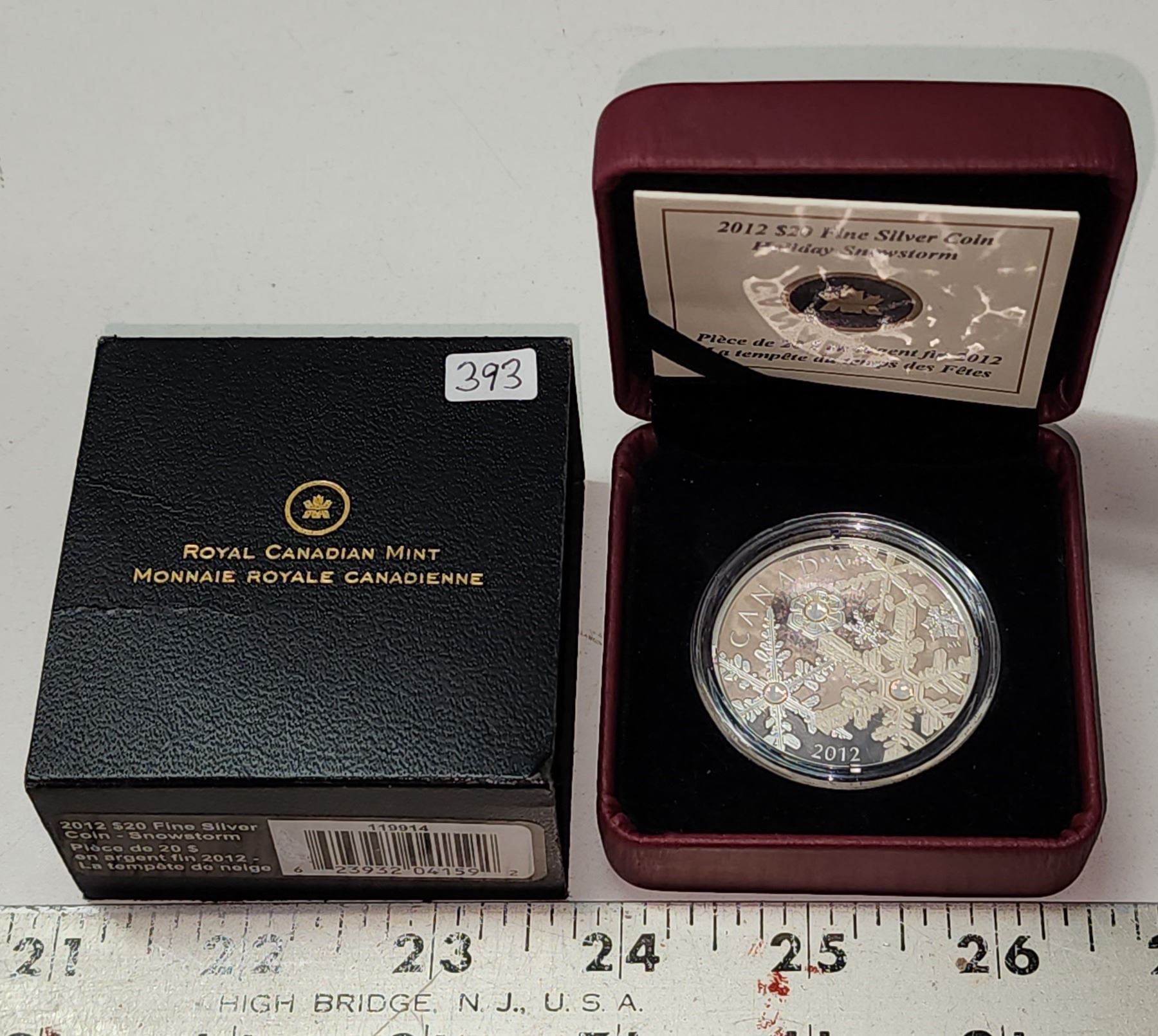 2012 Canada Fine Silver Proof $20, Holiday Snowstorm (with Crystals), COA