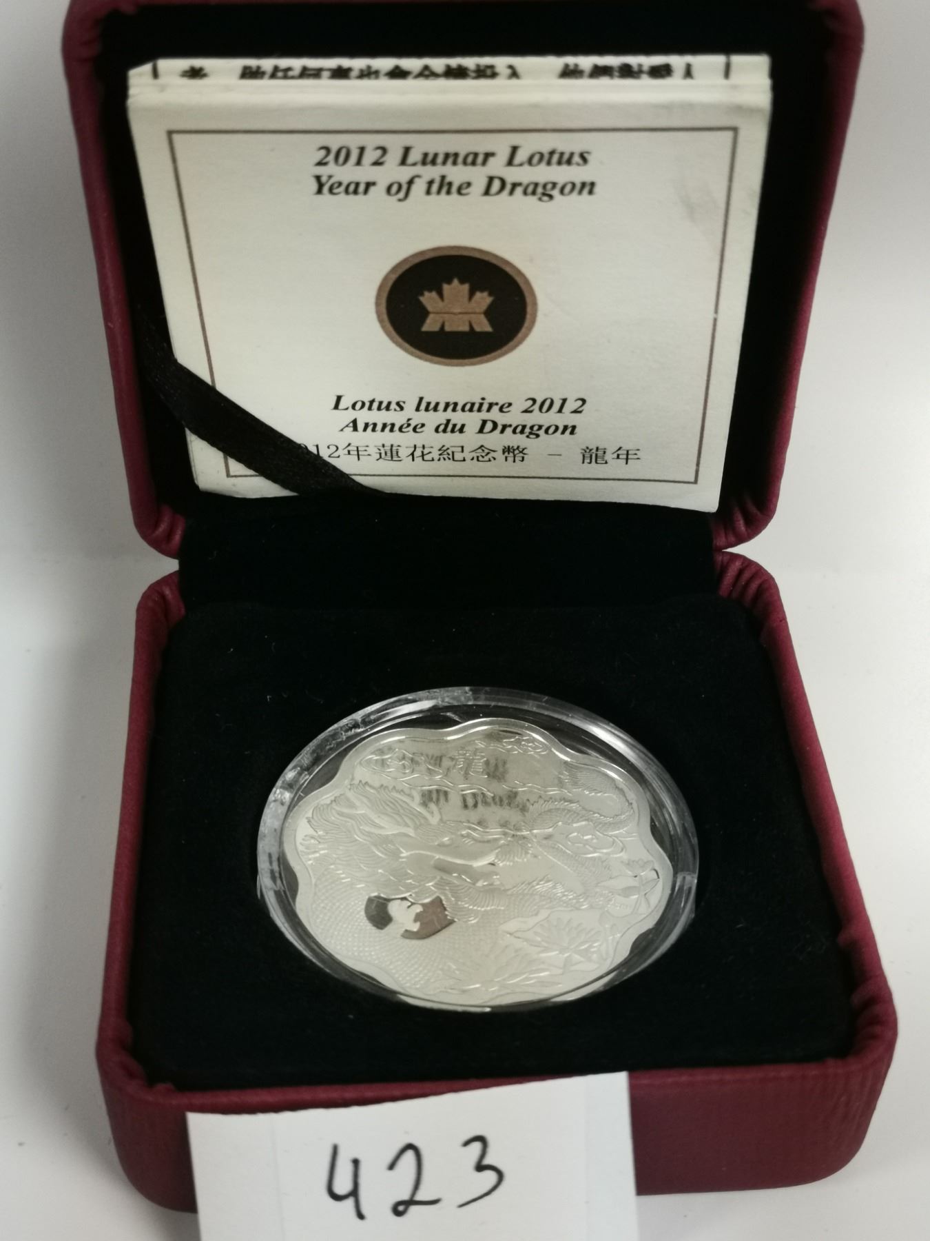 2012 Lunar Lotus - Year of the Dragon, Canadian fine silver coin