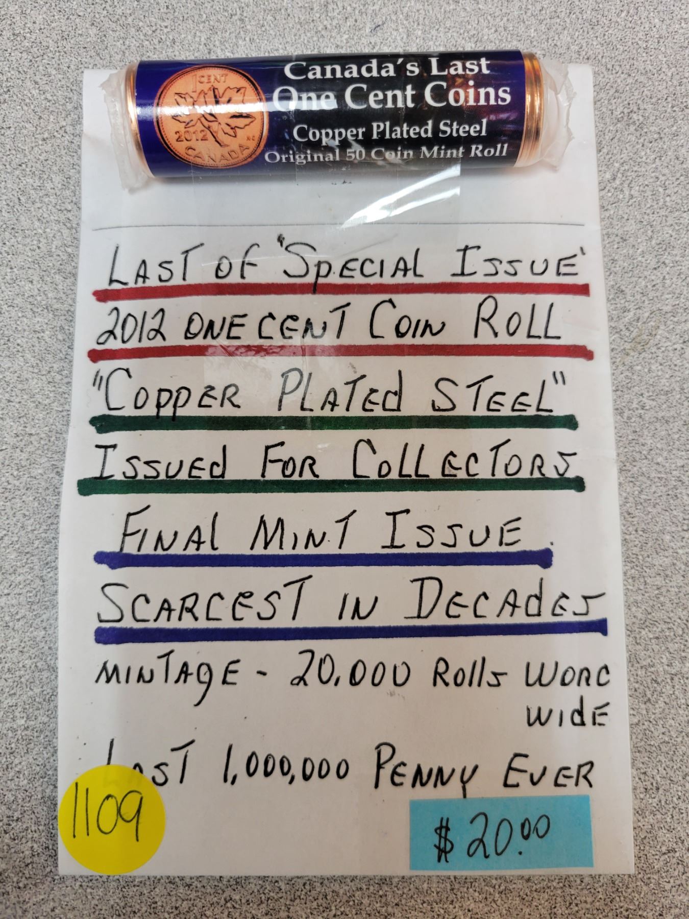2012 One cent coin roll 'copper plated steel' Canada's last one cent coins