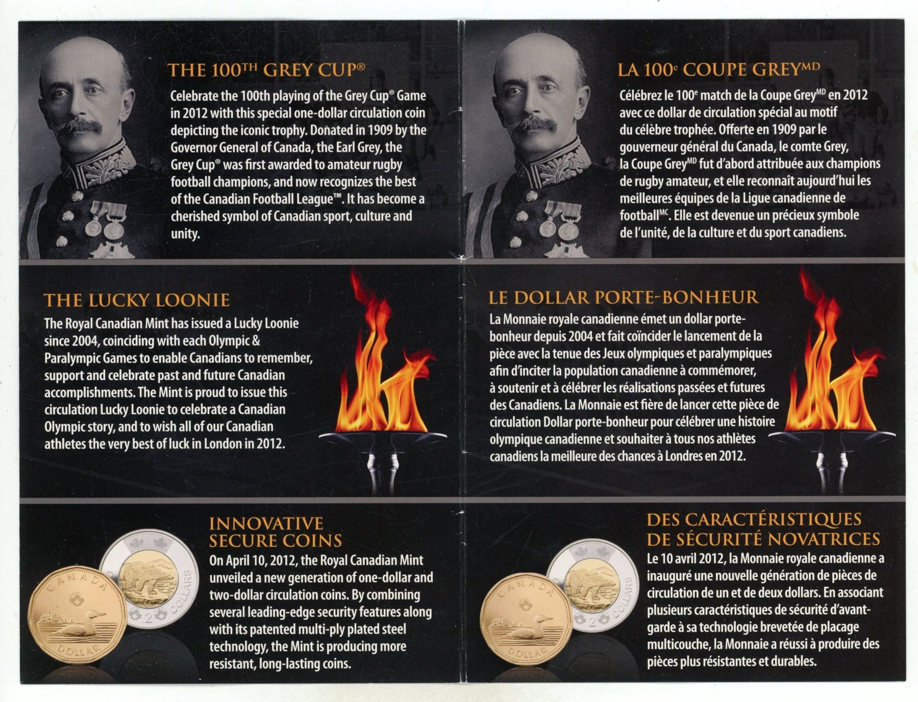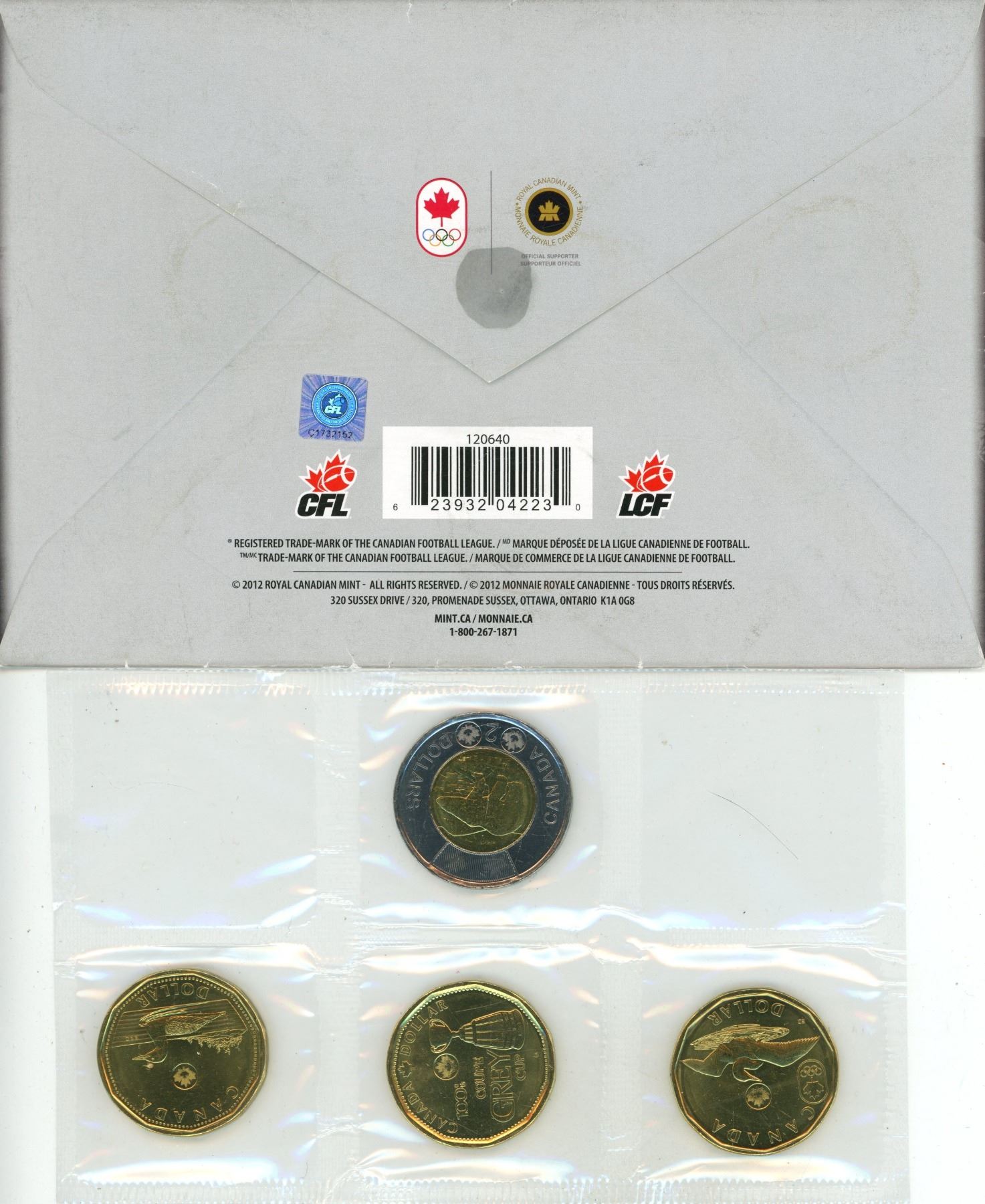 2012 Special Edition Grey Cup Proof Like Set. Includes 2012 Grey Cup Loonie.