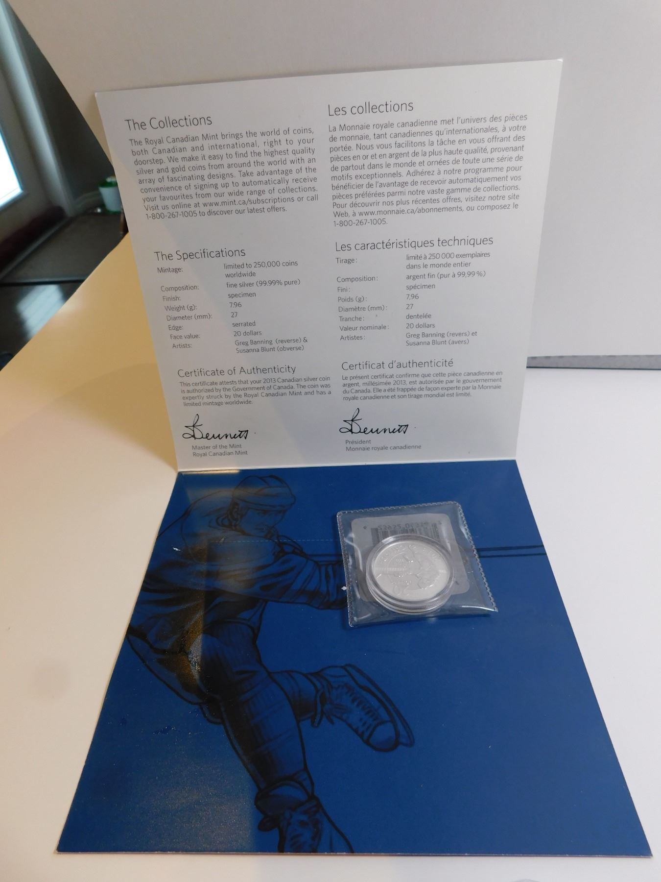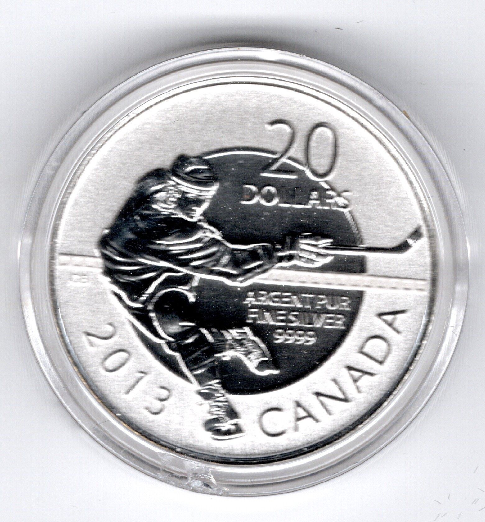 2013, 20 FOR 20, $20 FACE, QUARTER OUNCE SILVER COIN, HOCKEY, RCM