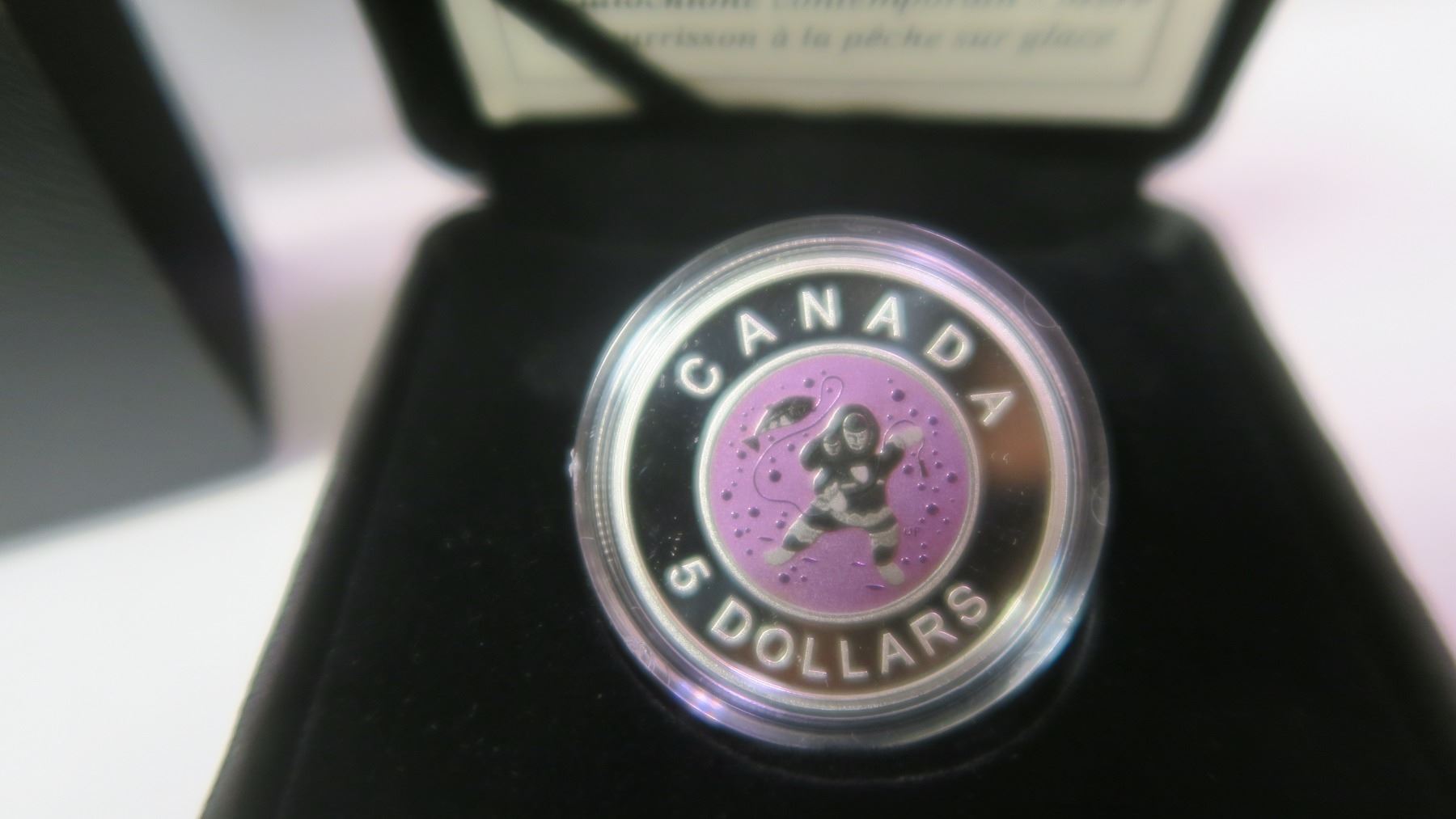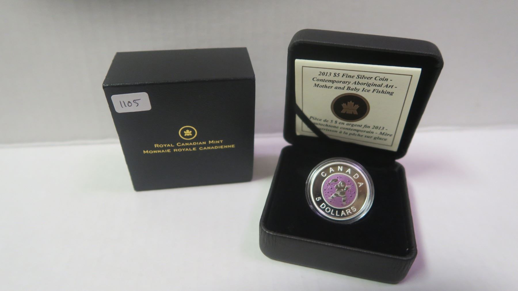 2013 $5 fine silver coin - Contemporary Aboriginal art - " Mother & baby ice fishing" # 1130/6500