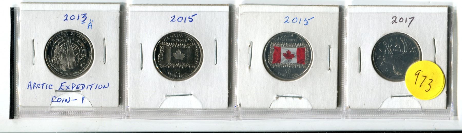 2013 Artic Expedition A, 2015 Canada Flag-Plain & Coloured, 2017, Twenty-Five Cent Coins