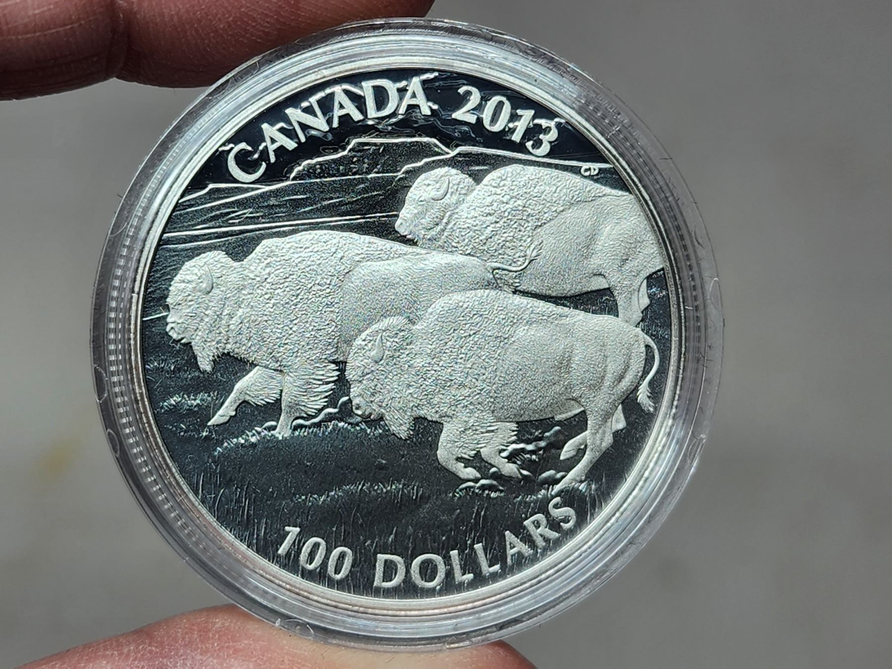 2013 "Bison Stampede" Canadian 100 dollar, fine silver coin
