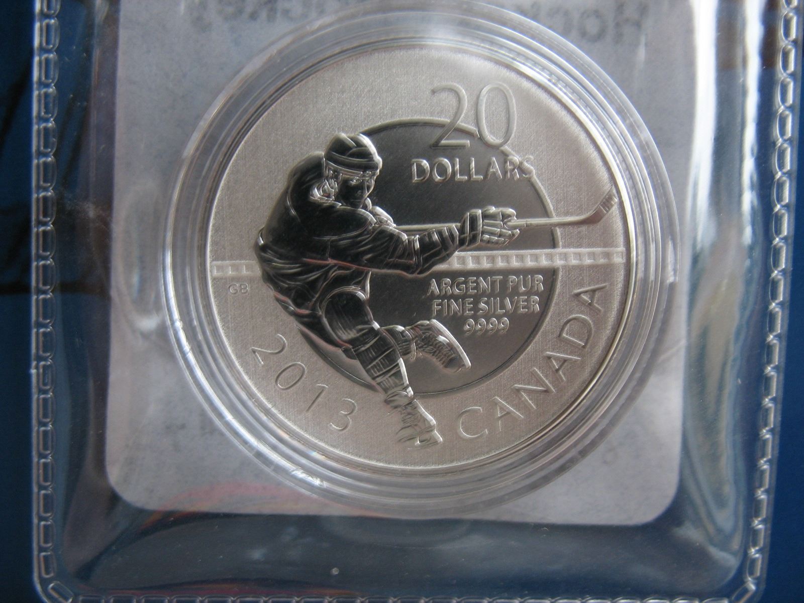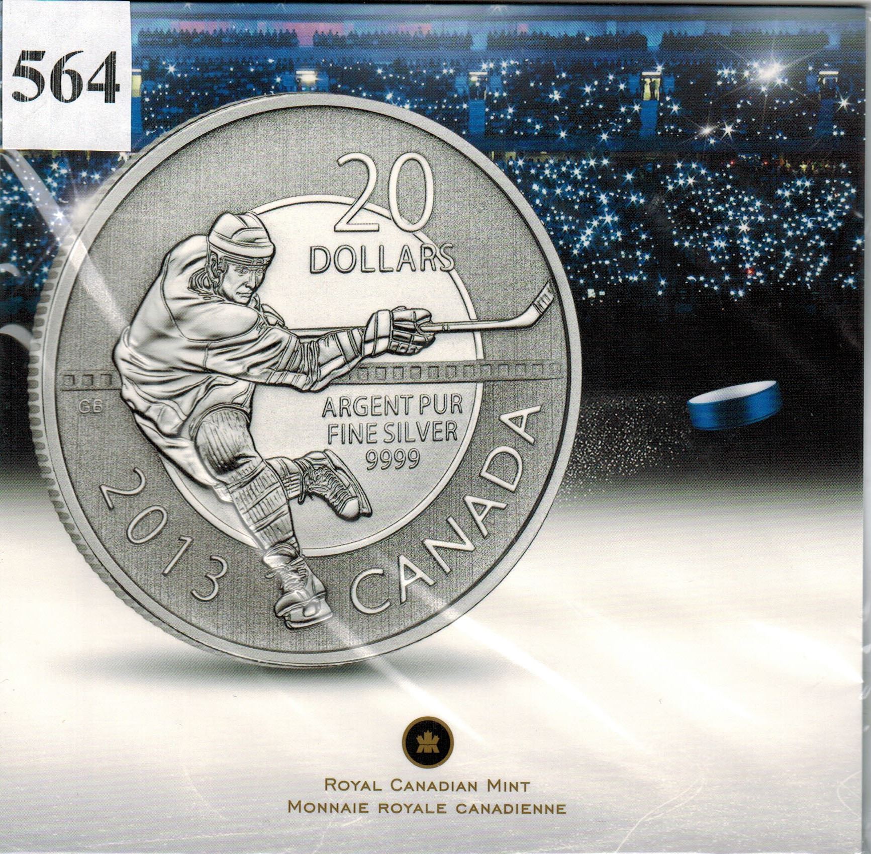 2013 CANADIAN $20 SILVER COIN - .9999 PURE SILVER - HOCKEY