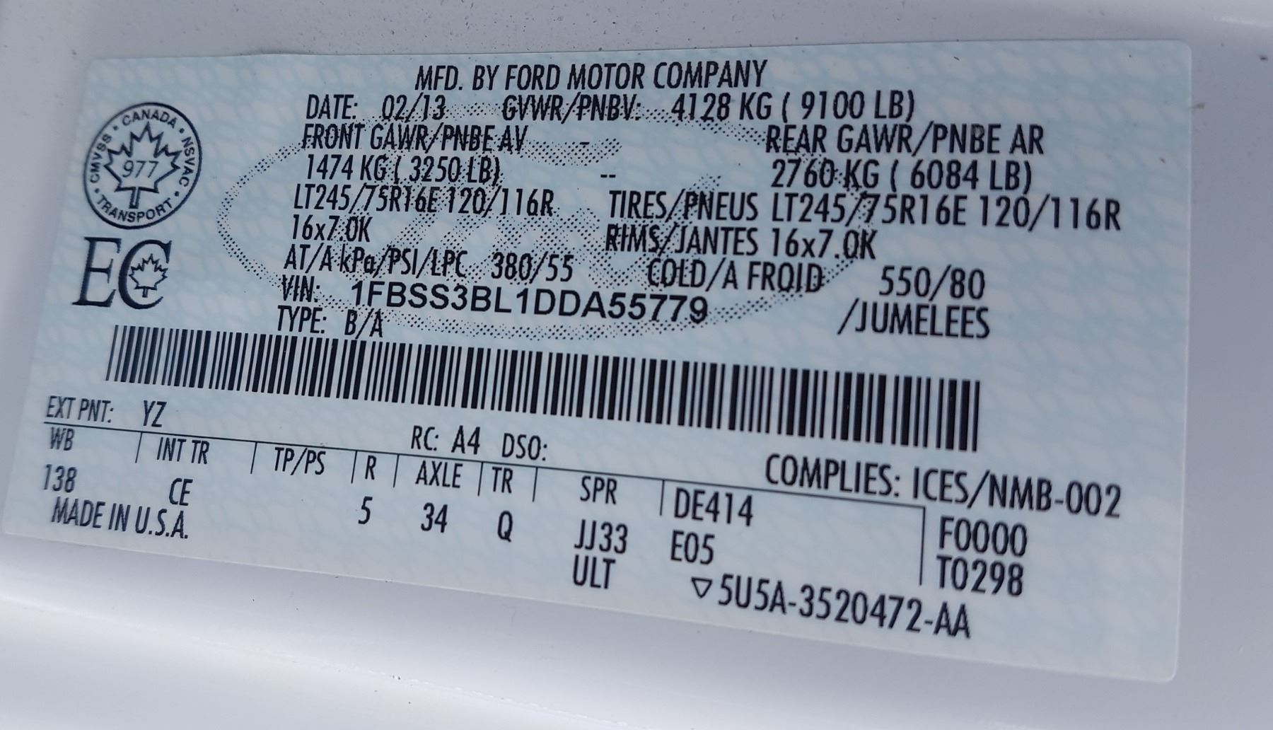 2013 FORD ECONOLINE E350 SD WAGON EXT 1FBSS3BL1DDA55779 (No Keys)