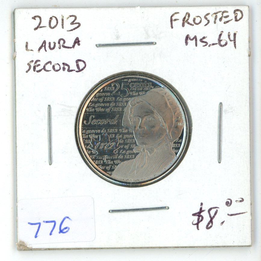 2013 Laura Secord 25 Cents. War of 1812 heroine. Frosted MS-64.