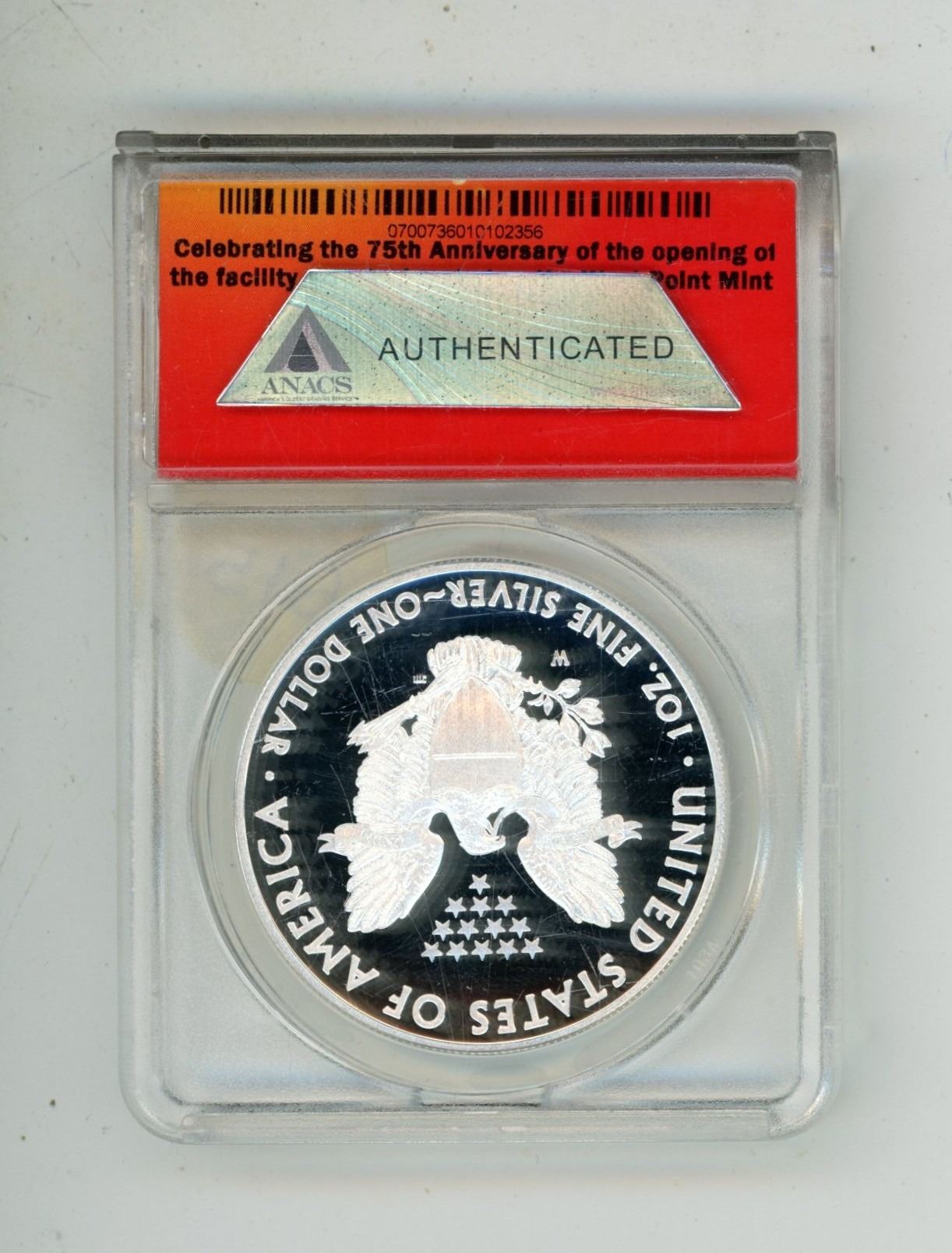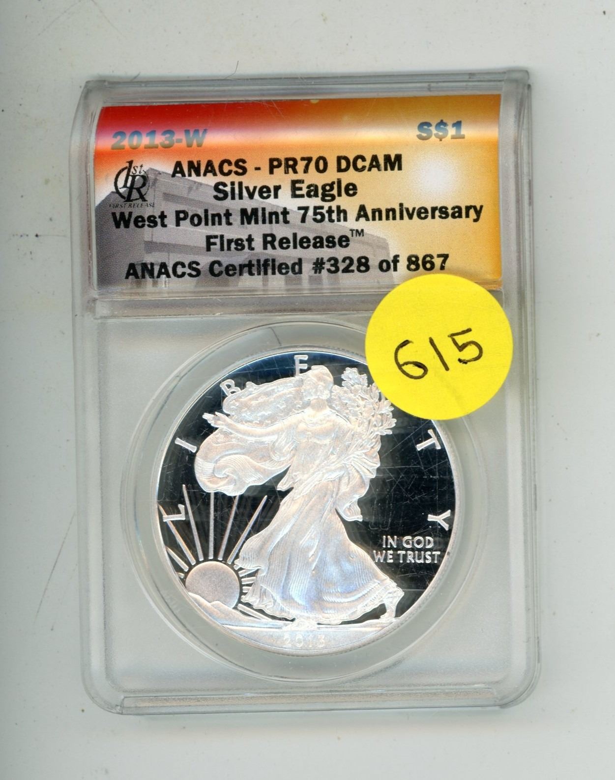 2013-W ANACS - PR70 DCAM Silver Eagle- West Point Mint 75th Anniversary First Release - ANACS Certified #328 of 867.