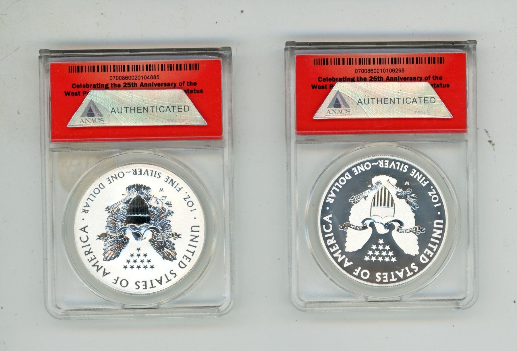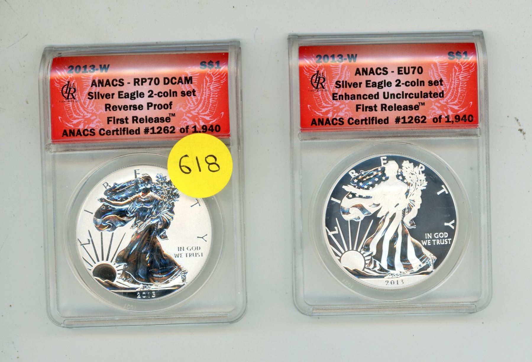 2013-W - RP70 DCAM and EU70 Silver Eagle 2-Coin Set Enhanced Uncirculated First Release ANACS Certified #1262 of 1940. (Reverse Proof and Proof)