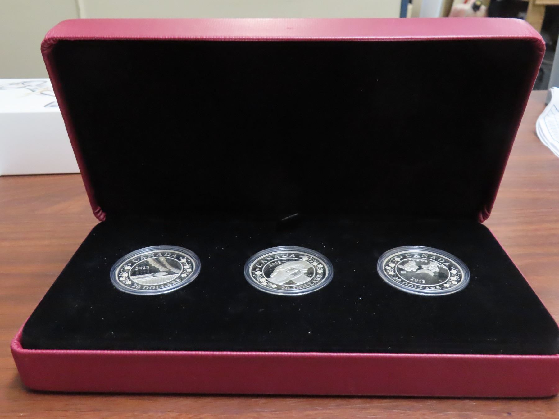 2013 canada fine silver $20 (X3) coin set, birth of the royal infant, COA