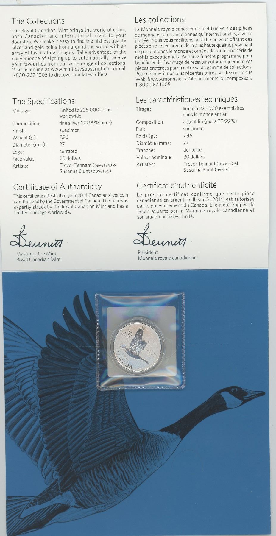 2014 $20 Canada Goose 99.99% Silver
