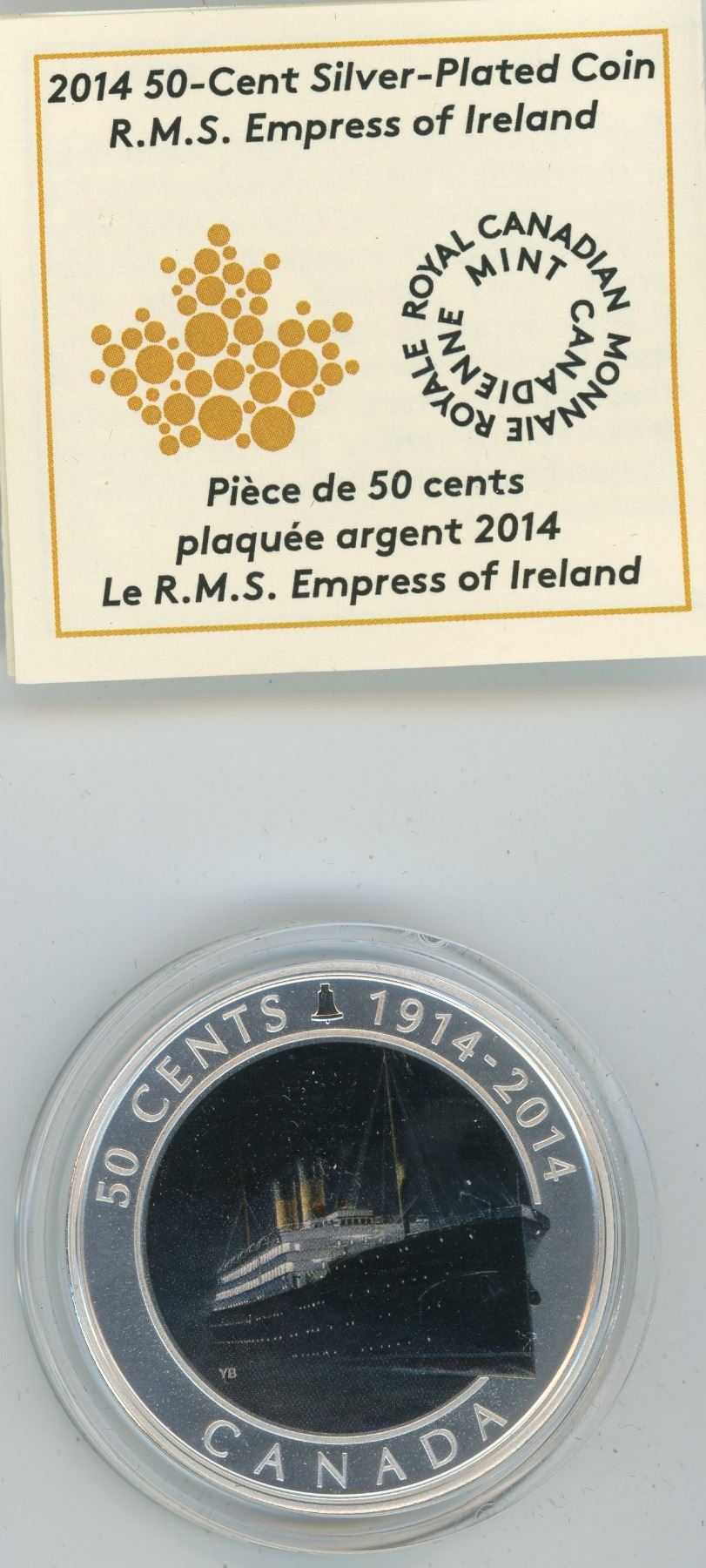 2014 CANADA 50 CENT EMPRESS OF IRELAND SILVER