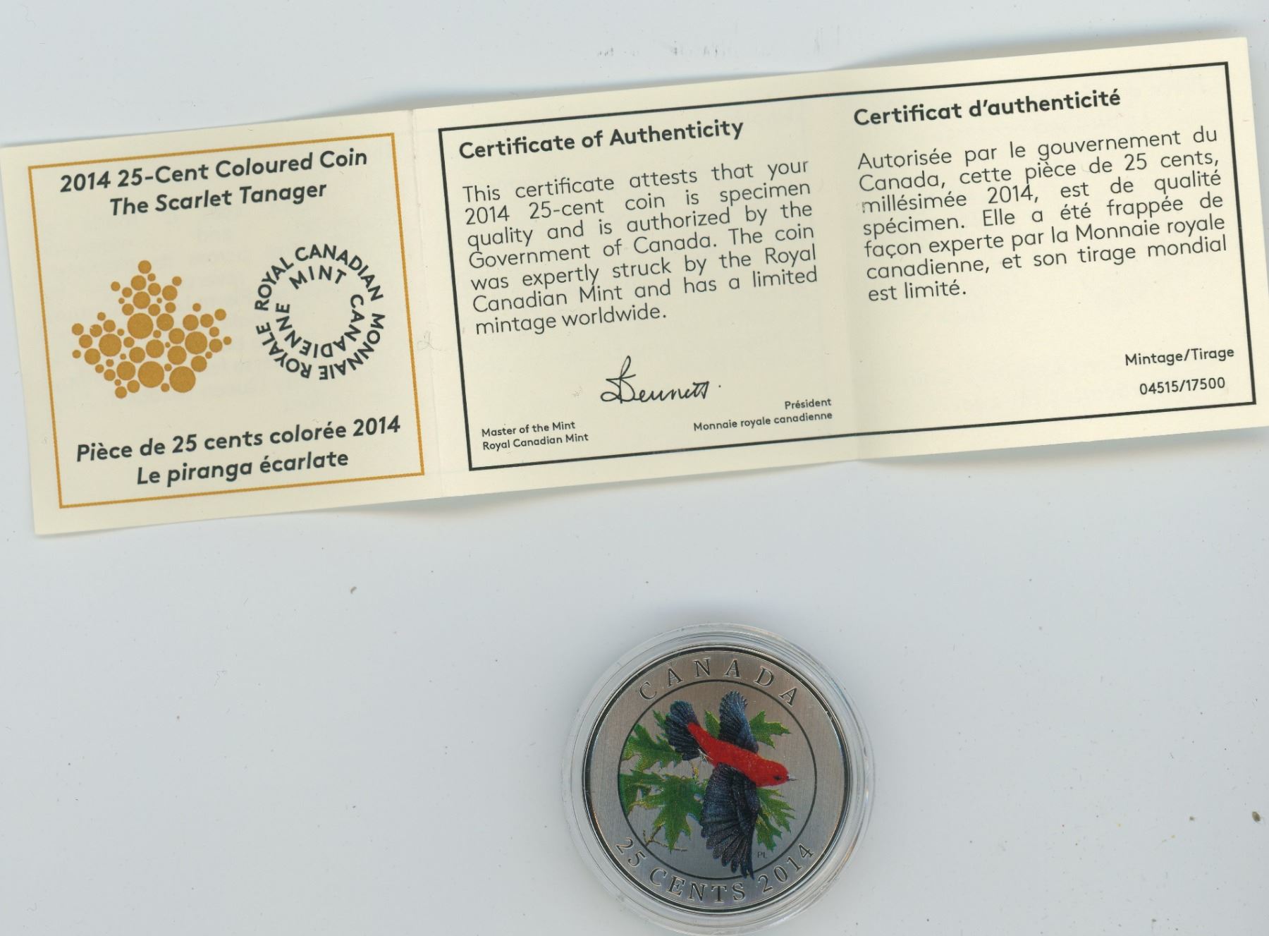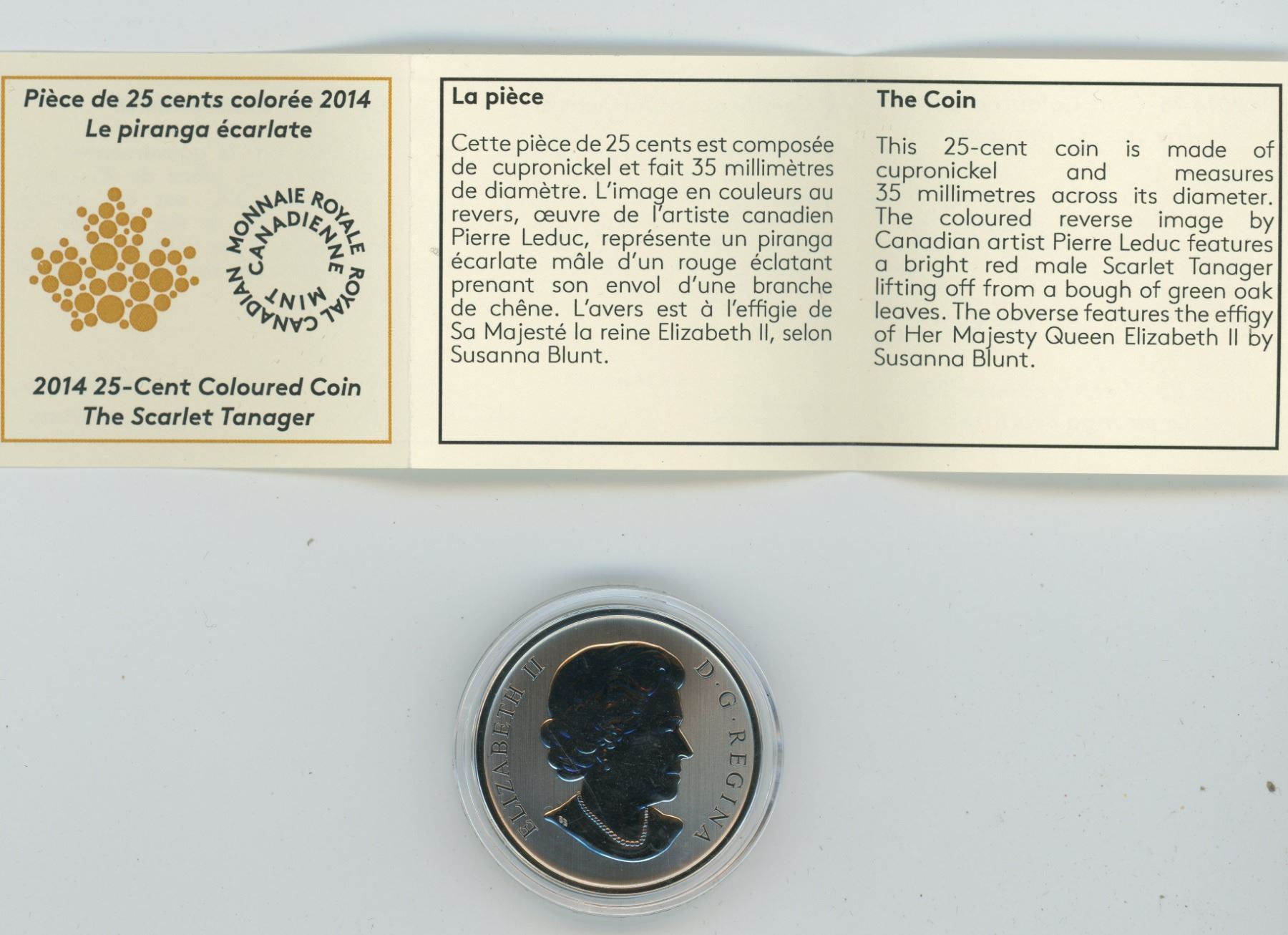 2014 CANADA PROOF 25 CENT SILEVR SCARLET TANGER