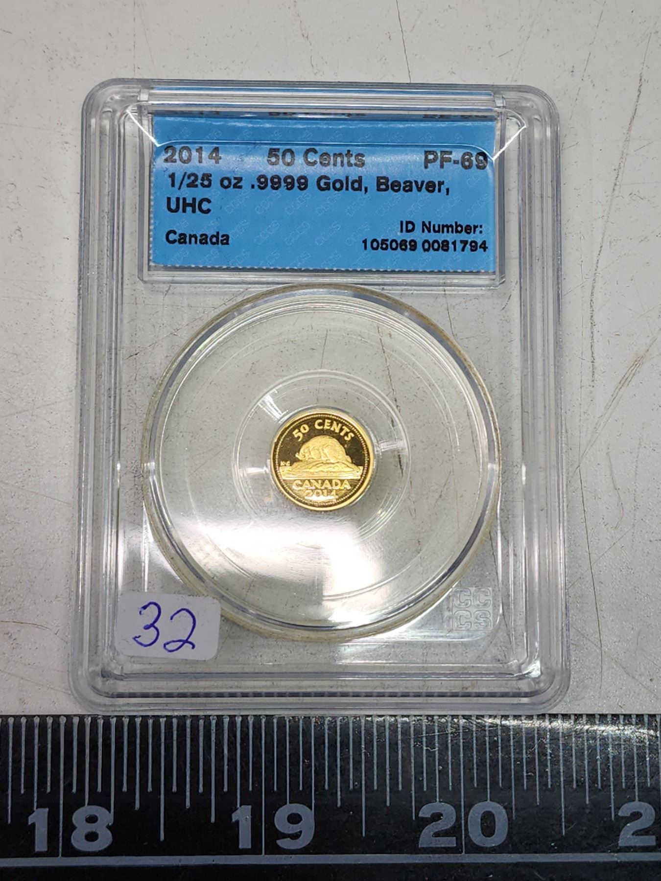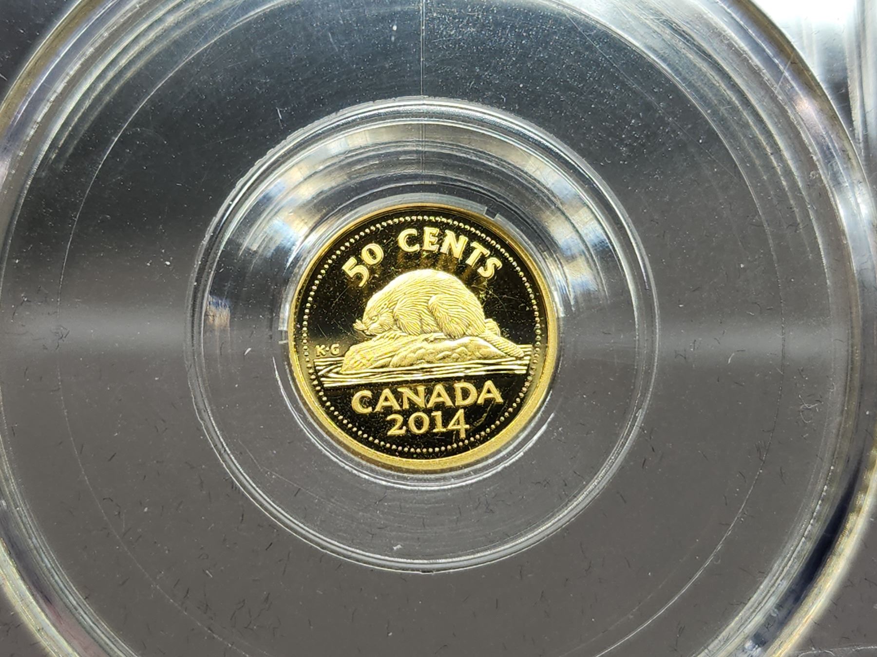 2014 CCCS graded. Beaver, Canadian 1/25oz .999 pure gold, 50 cent coin - PF 69