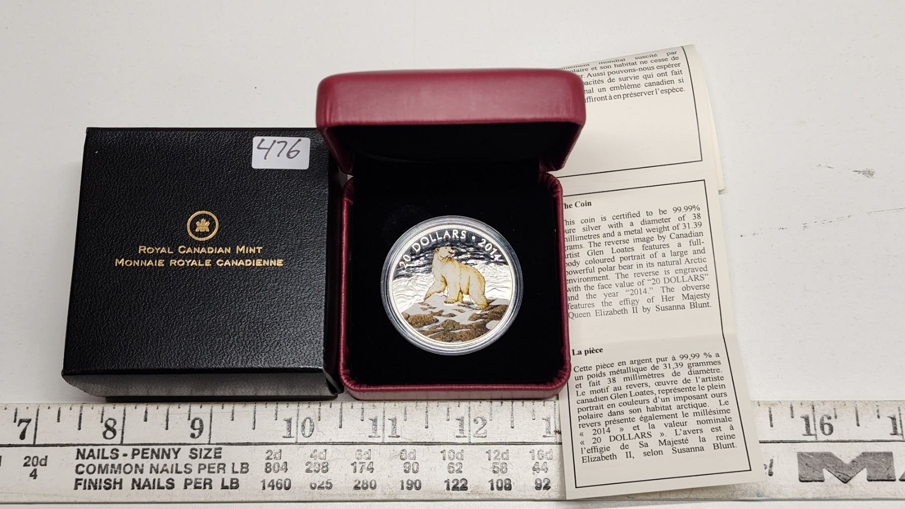 2014 Canada Fine Silver Proof $20, Iconic Polar Bear, COA