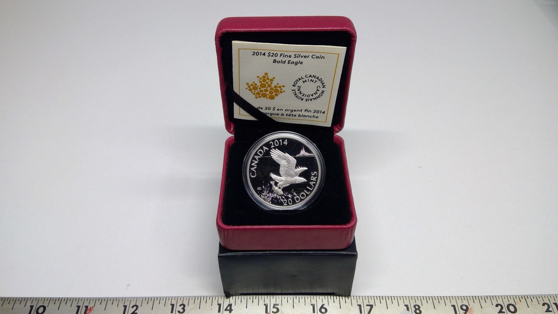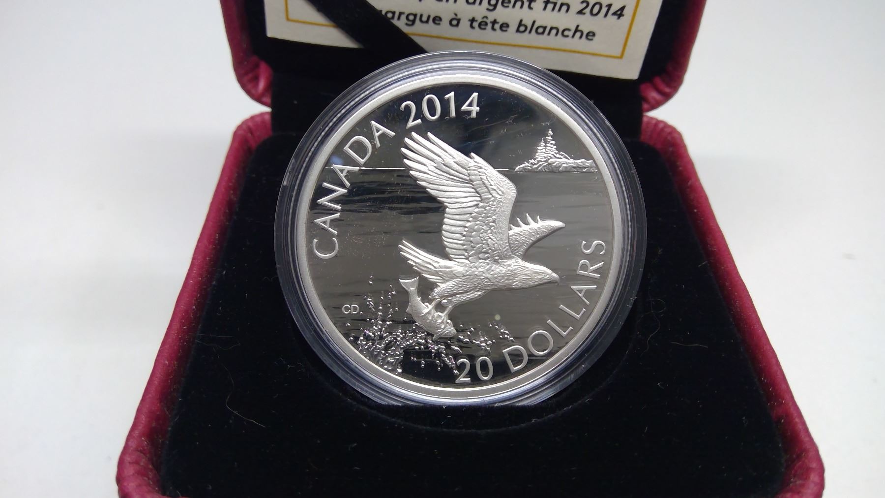 2014 Canada Fine Silver Proof $20 coin, Bald Eagle, COA