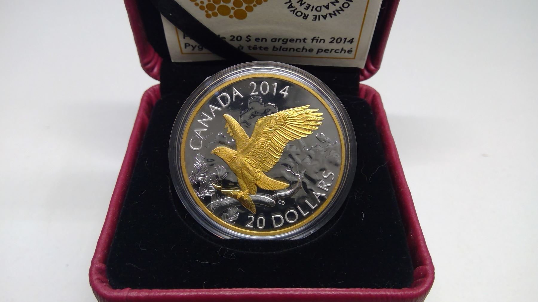 2014 Canada Fine Silver Proof $20 coin, Perched Bald Eagle, COA