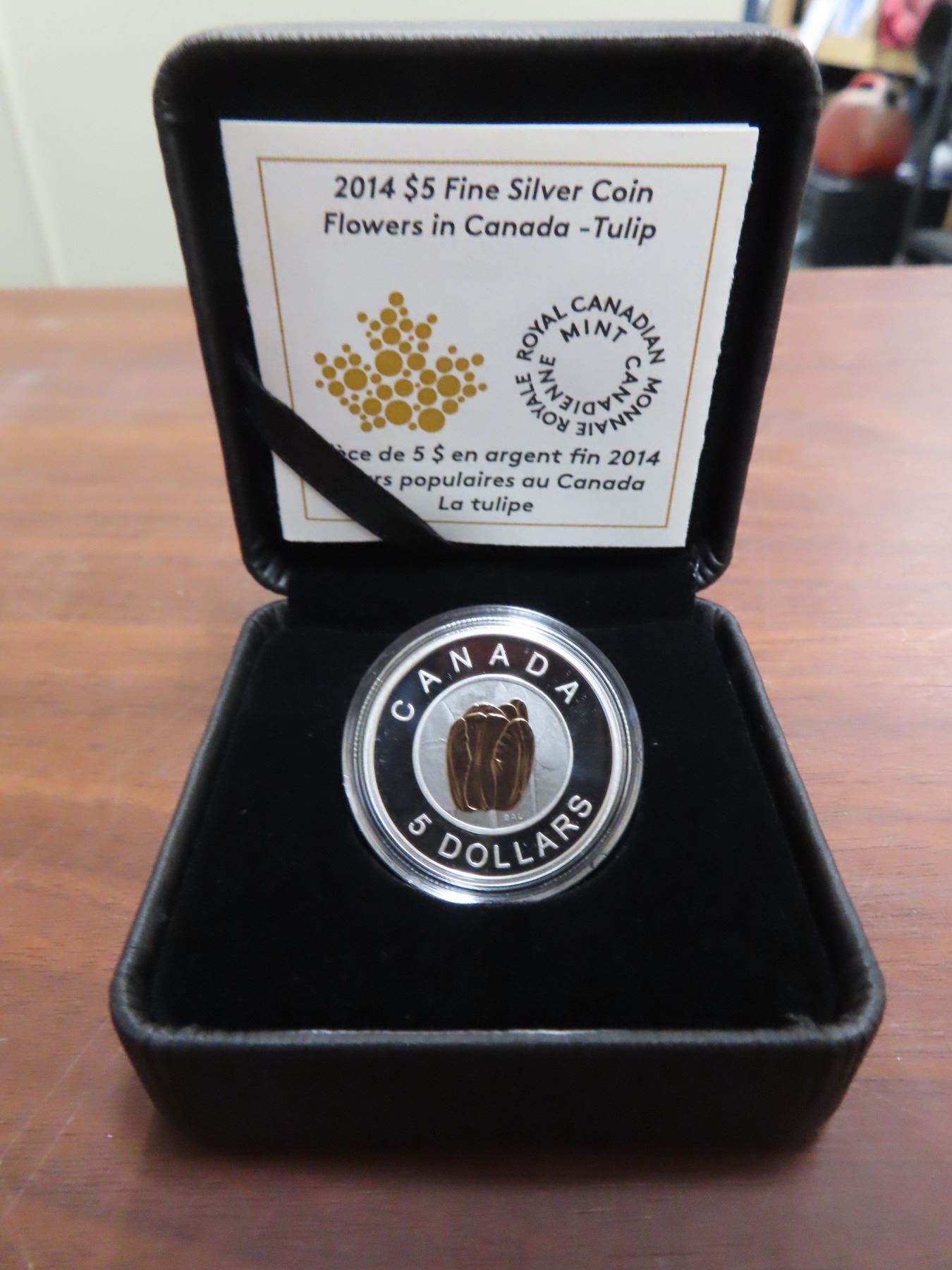 2014 Canadian Fine Silver 5 Dollar Coin; Flowers in Canada - Tulip