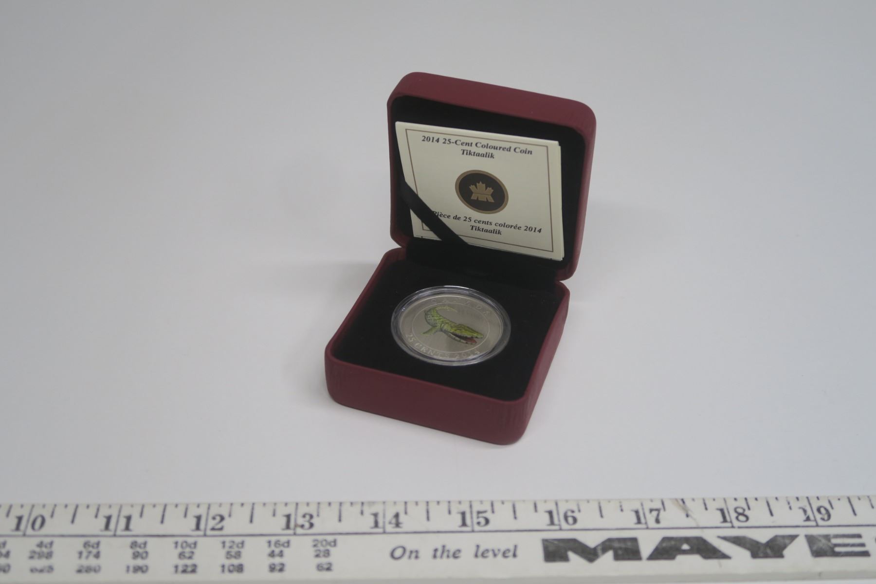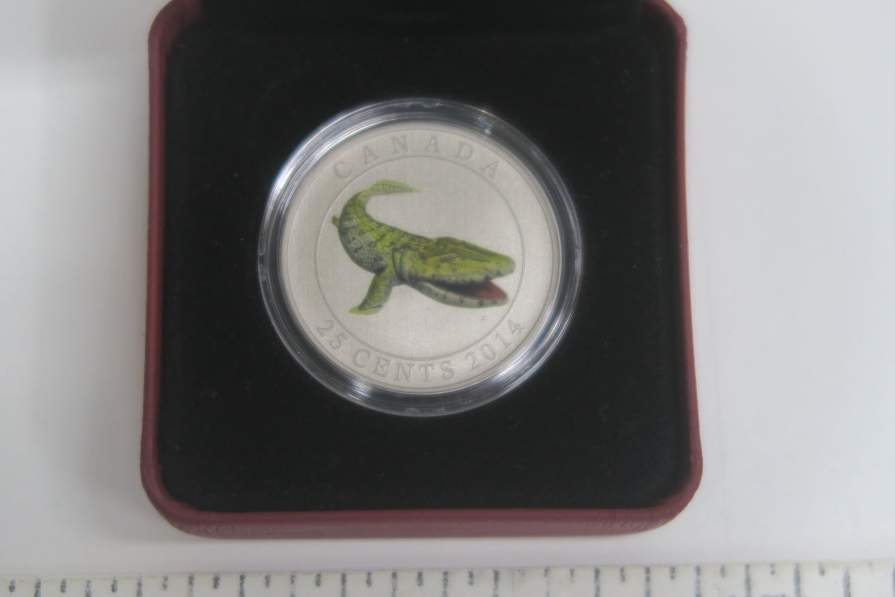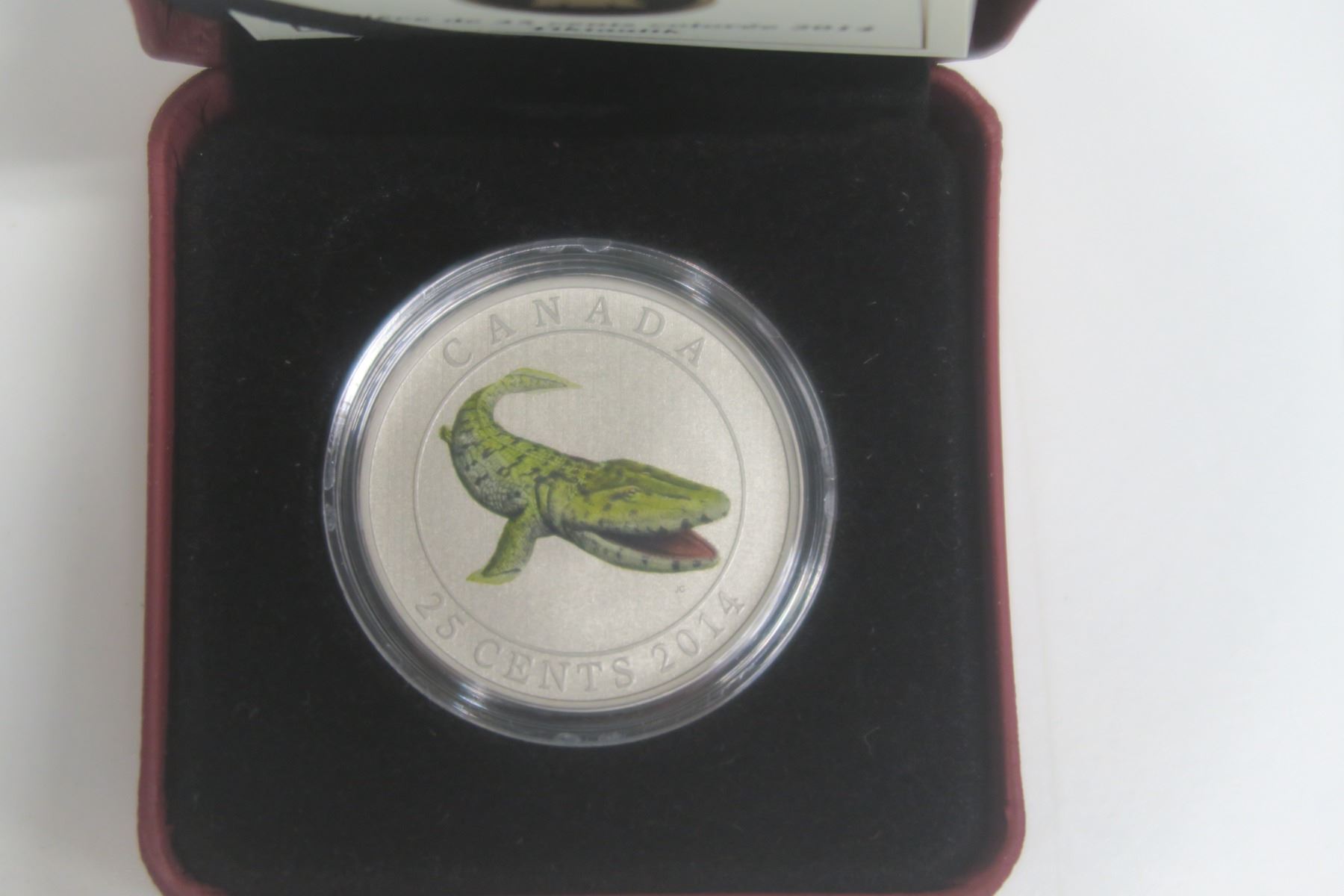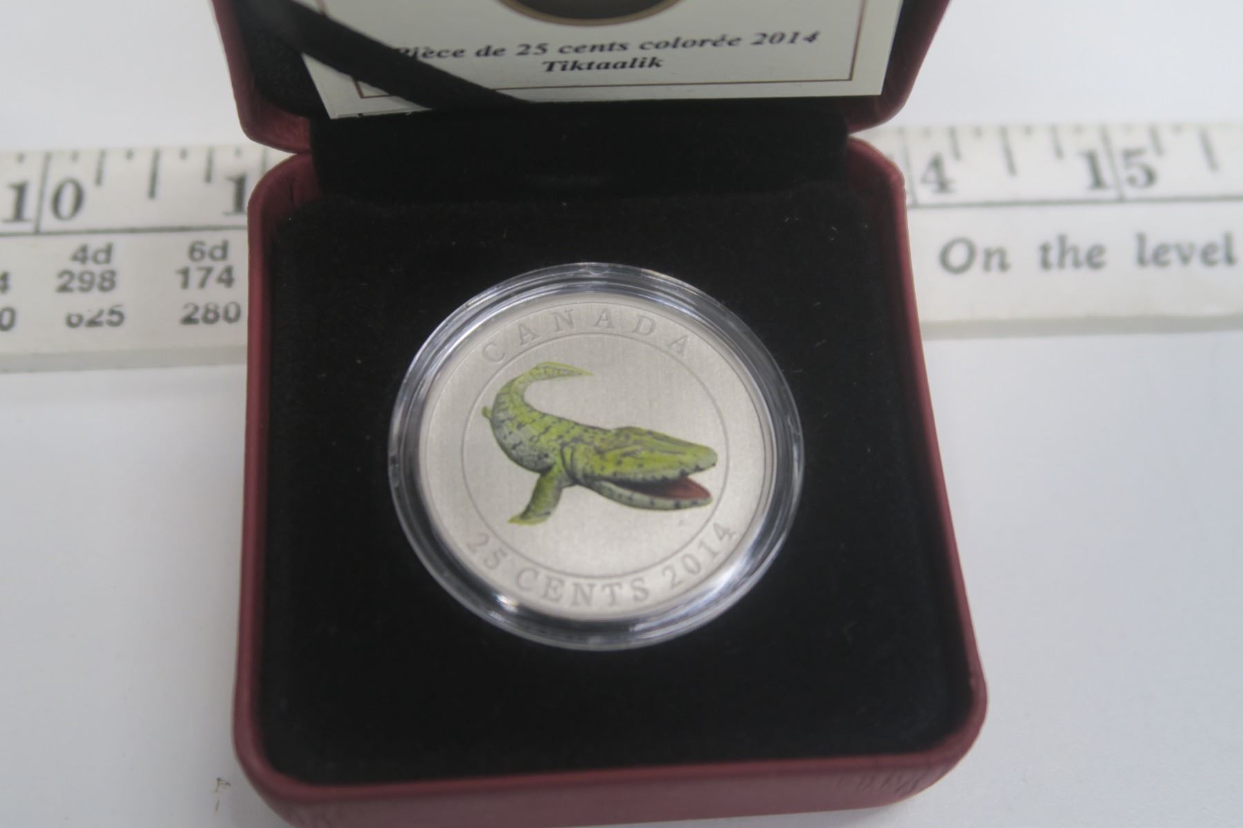 2014 Coloured Tiktaalik 25 Cents. Specimen. This pre-historic animal bridged the gap between water and land. Housed in its original case and box of issue. Nice.