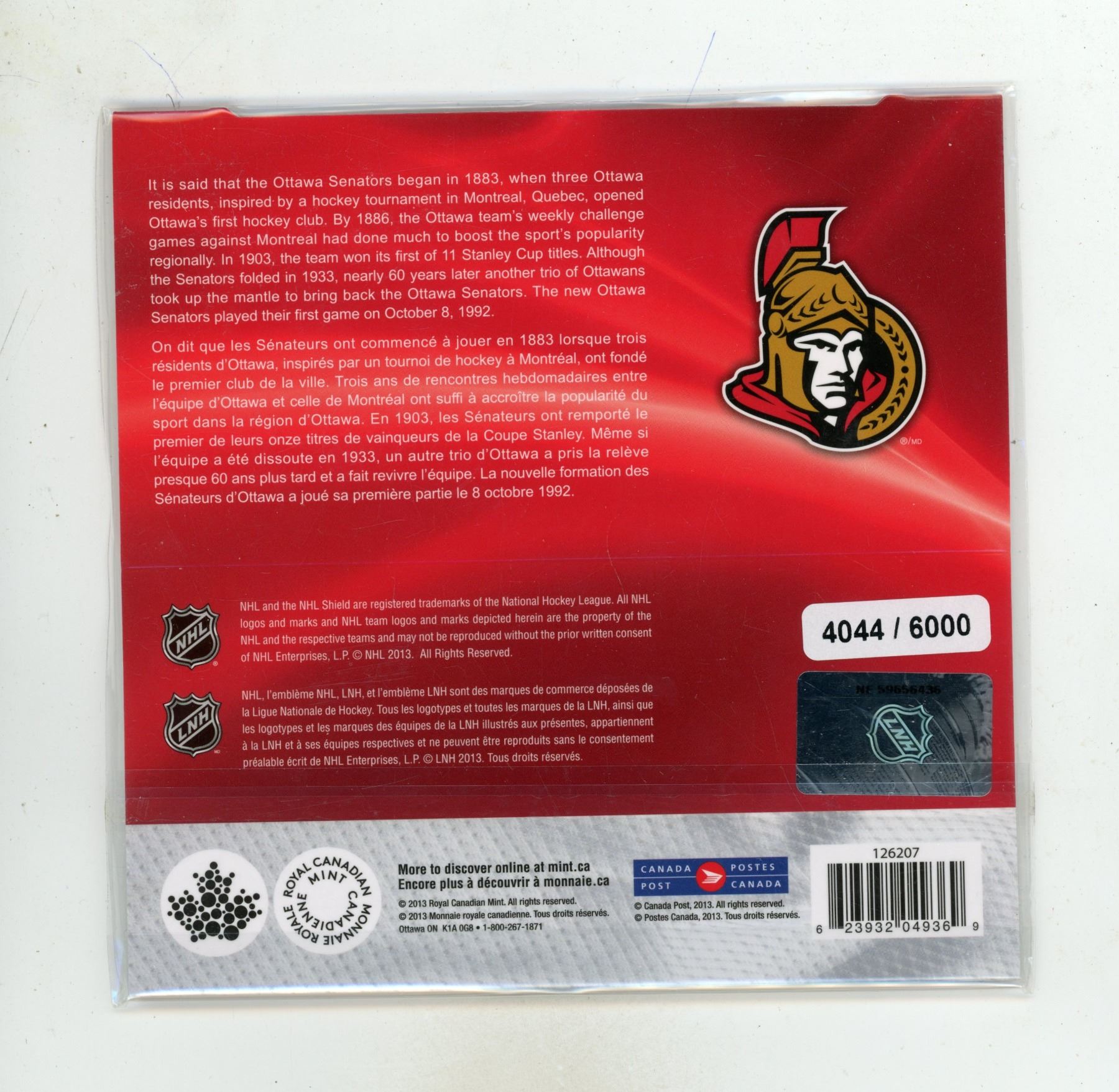 2014- Ottawa Senators stamp and coin set