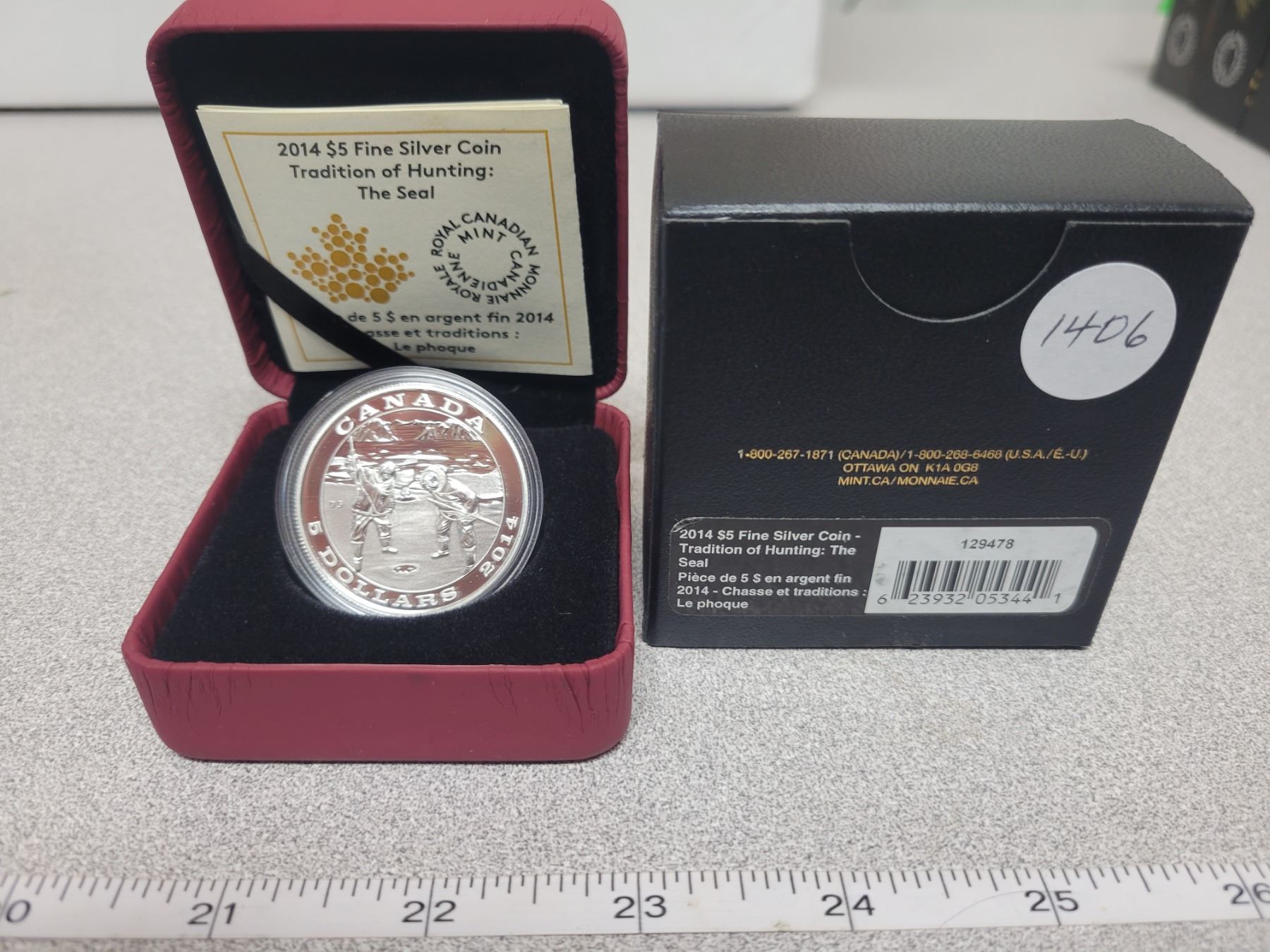 2014 - RCM - $5.00 - Fine Silver - Tradition of Hunting - THE SEAL