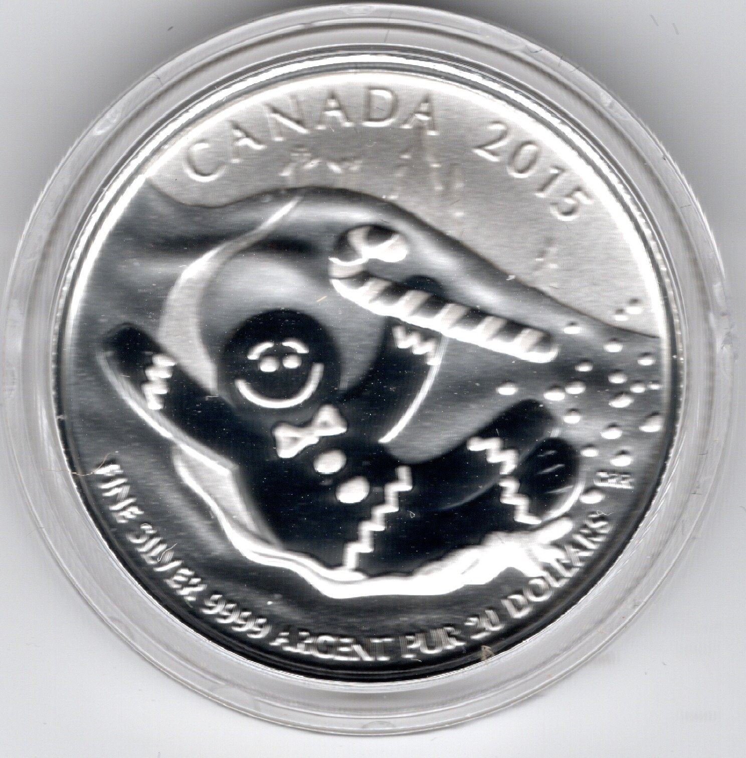 2015, 20 FOR 20, $20 FACE, QUARTER OUNCE SILVER COIN, GINGERBREADMAN AND CANDYCANE