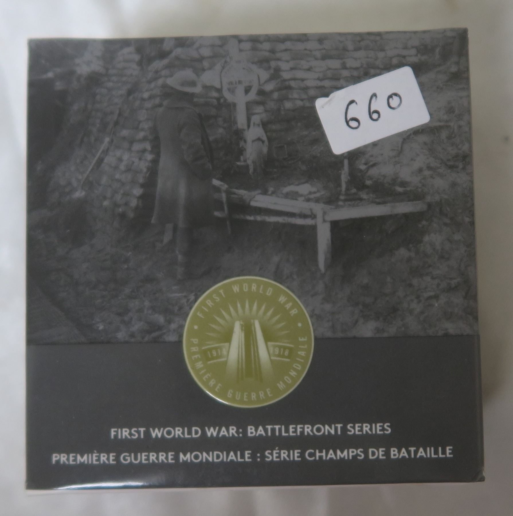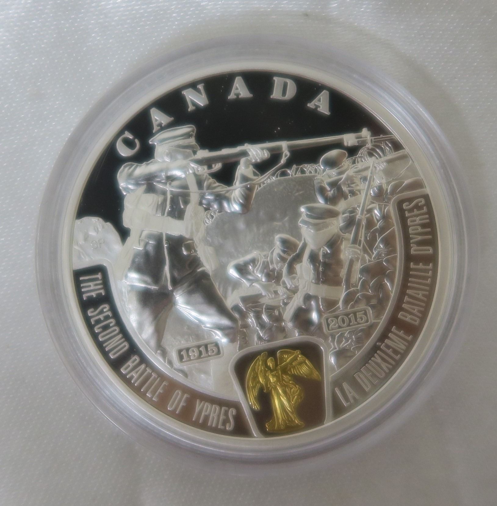 2015 $20 First World War: Battlefront Series The Second Battle of Ypres. 99.99% pure Silver. Gold plated Liberty. Proof with Ultra Heavy Cameo. Housed in its original RCM case & box of issue.