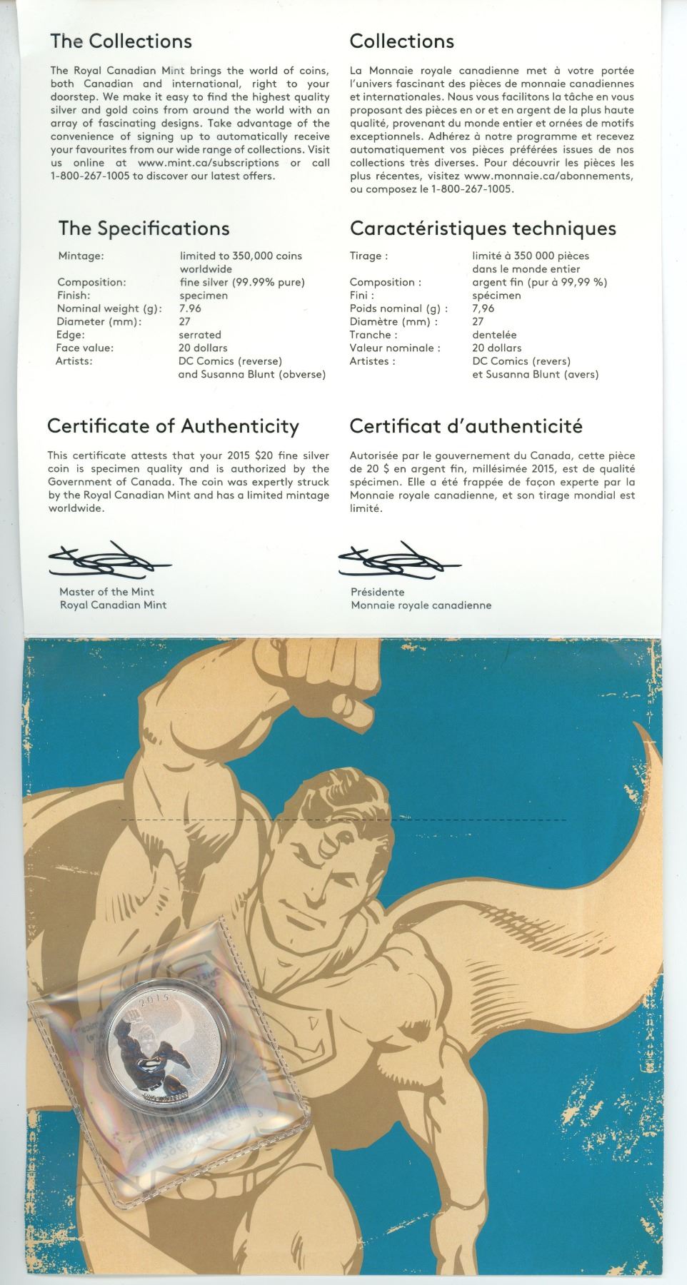 2015, 20 dollar Canadian fine silver, Superman coin