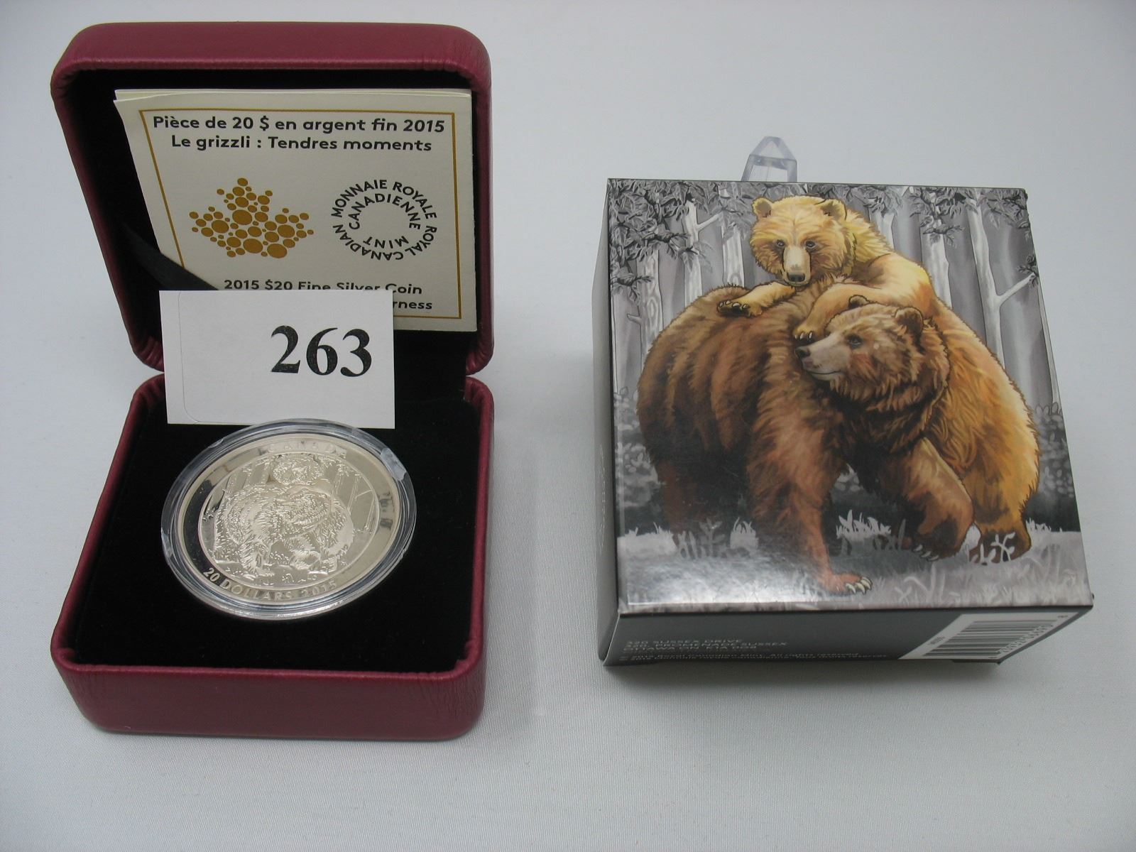 2015 CANADIAN $20 SILVER COIN - GRIZZLY BEAR - TOGETHERNESS
