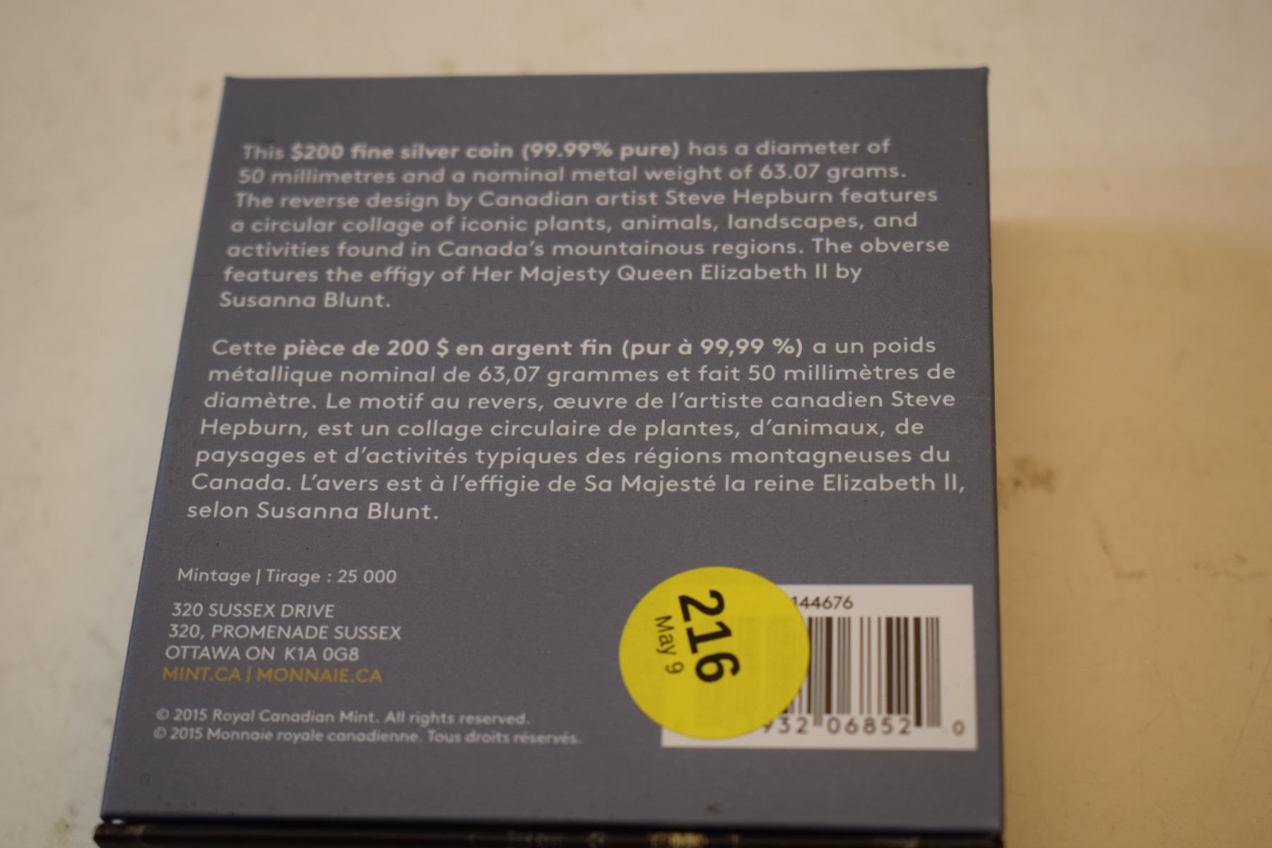 2015 Canada .9999 Fine Silver $200 Coin