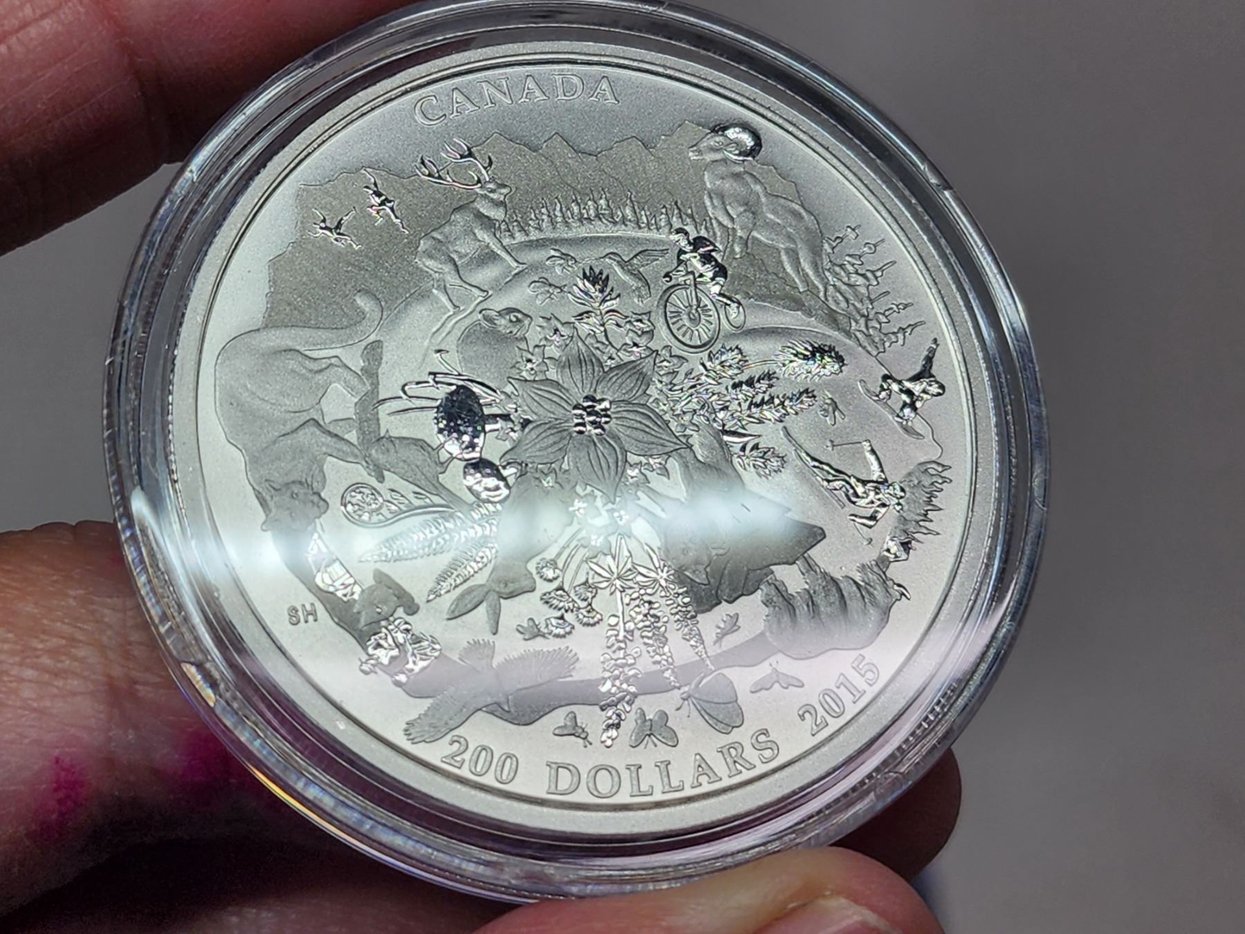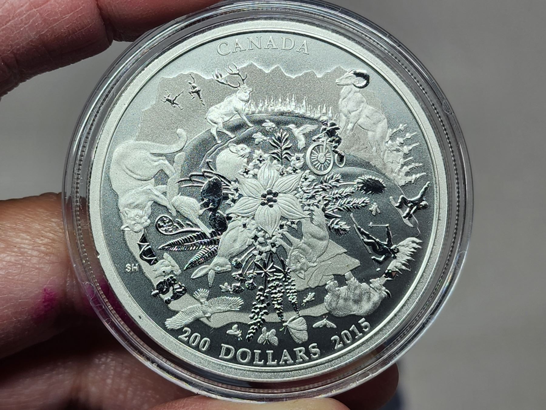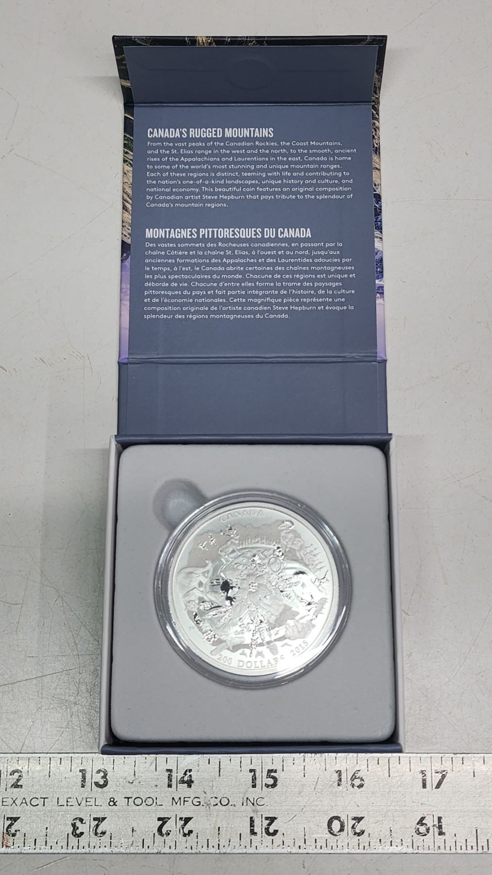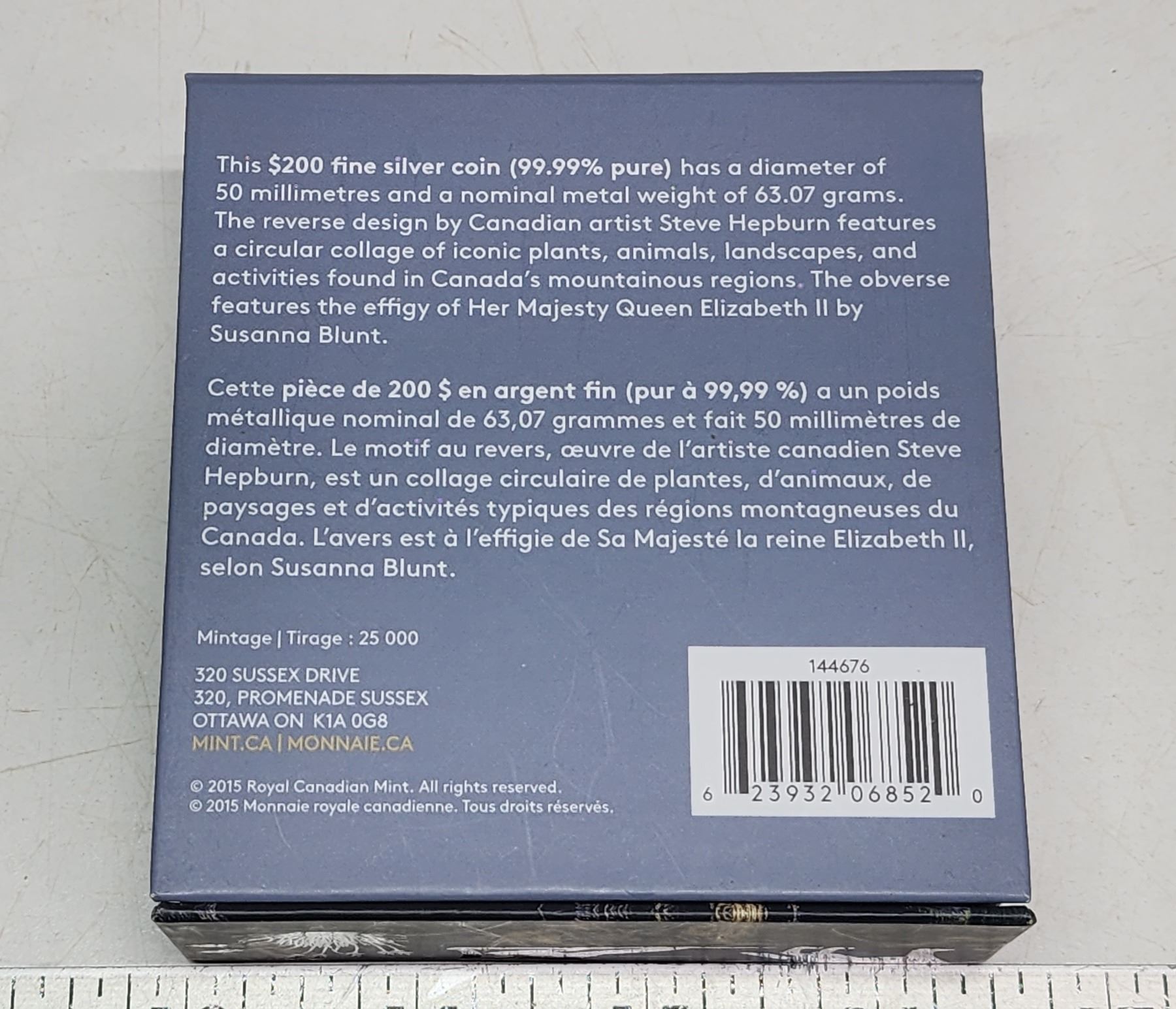 2015 "Canada's Rugged Mountains" Canadian 200 dollar, 99.99% pure silver coin