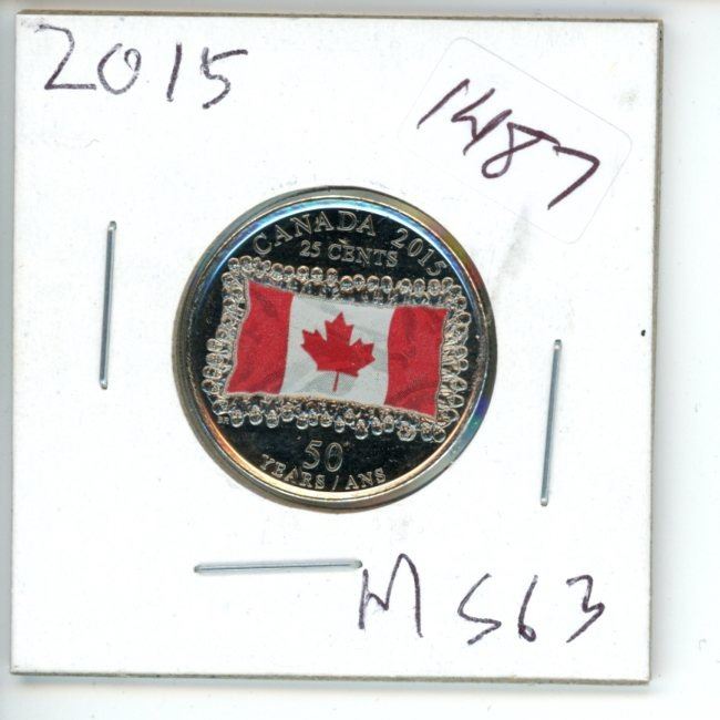 2015 Canadian 25 Cent Commemorative Coin - 50 Years Flag - Color