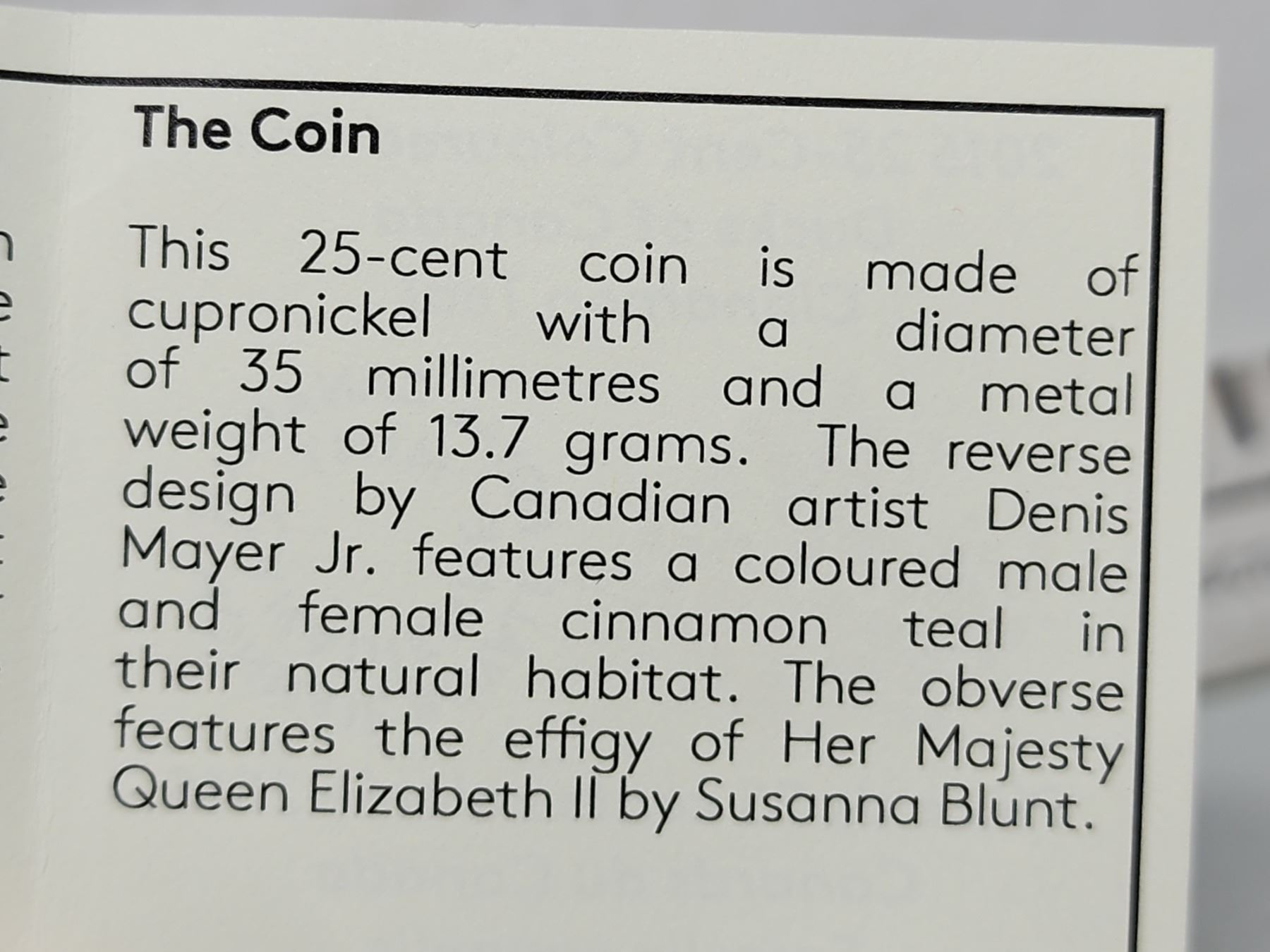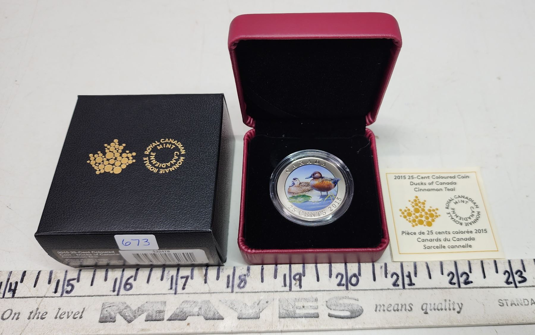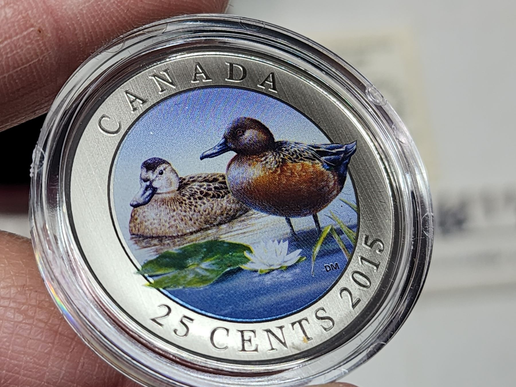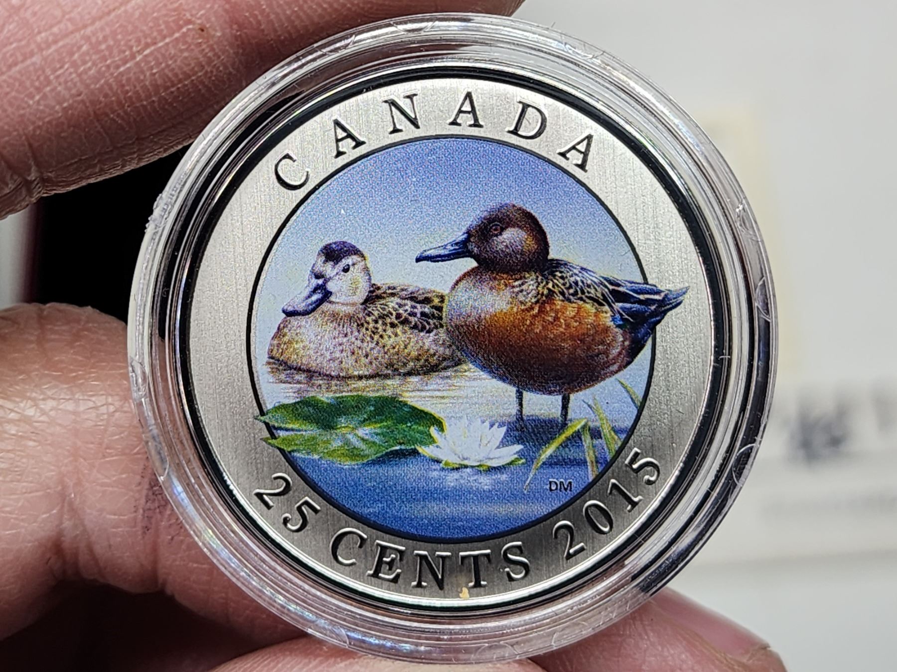 2015 Canadian 25 cent, colored cupronickel "Ducks of Canada; Cinnamon Teal" coin #00755 - housed in RCM case