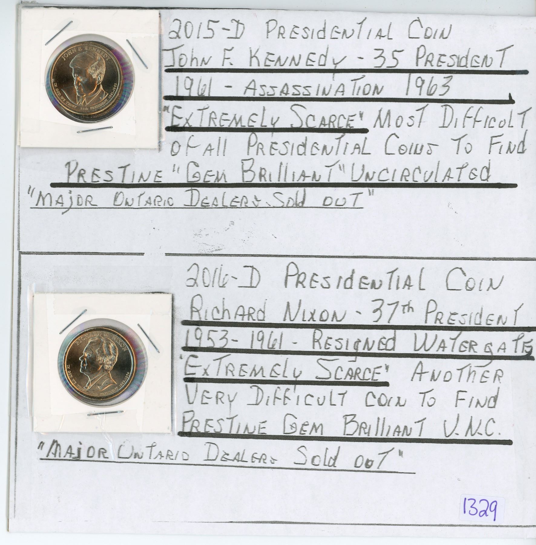 2015-D "John F Kennedy" USA dollar & 2016-D "Richard Nixon" USA dollar