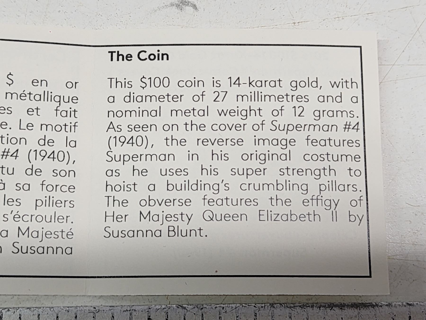 2015 "Iconic Superman - #4 1940 comic" Canadian 100 dollar, 14K Gold coin - coloured