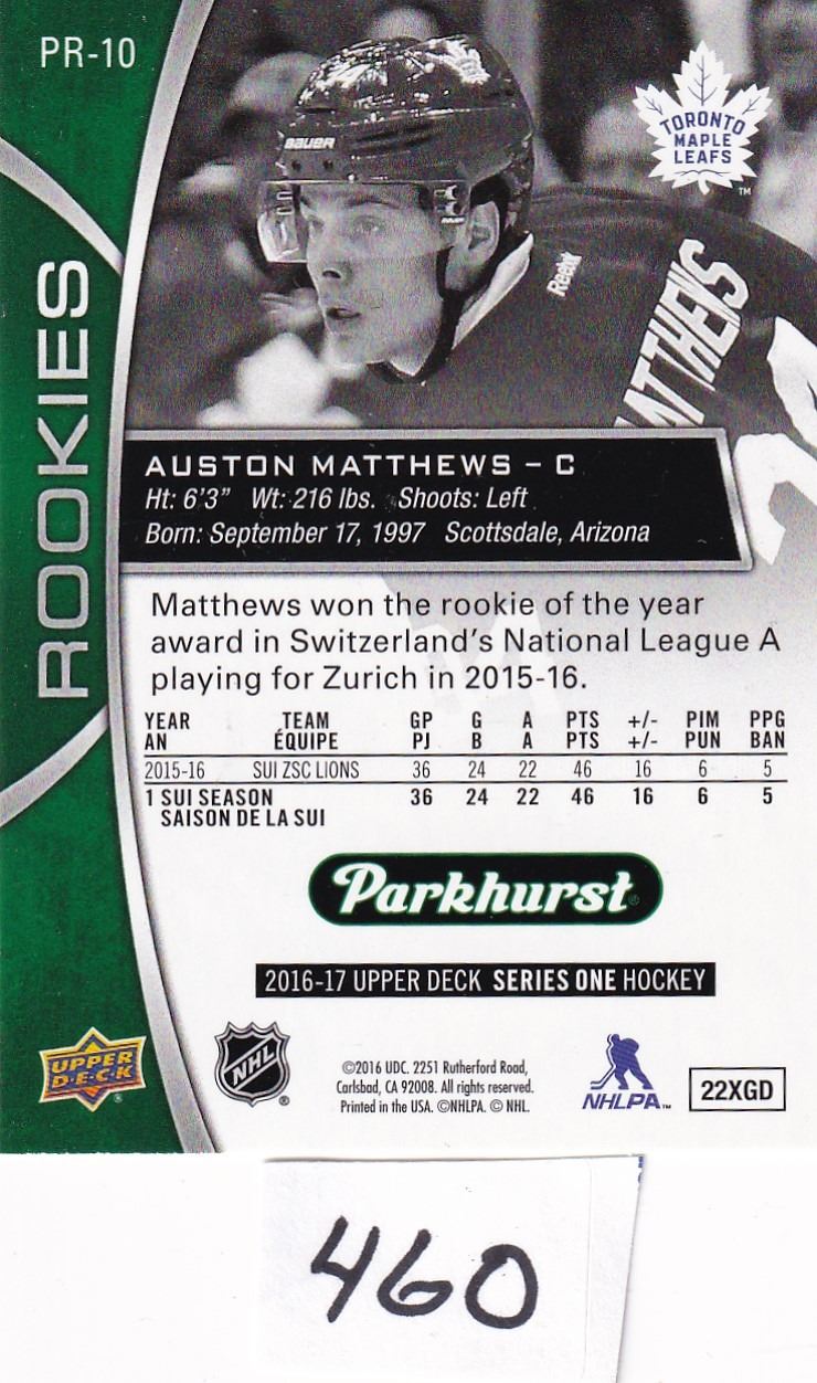 2016-17 Parkhurst Rookies Auston Matthews