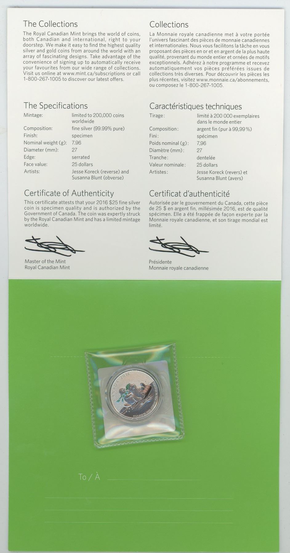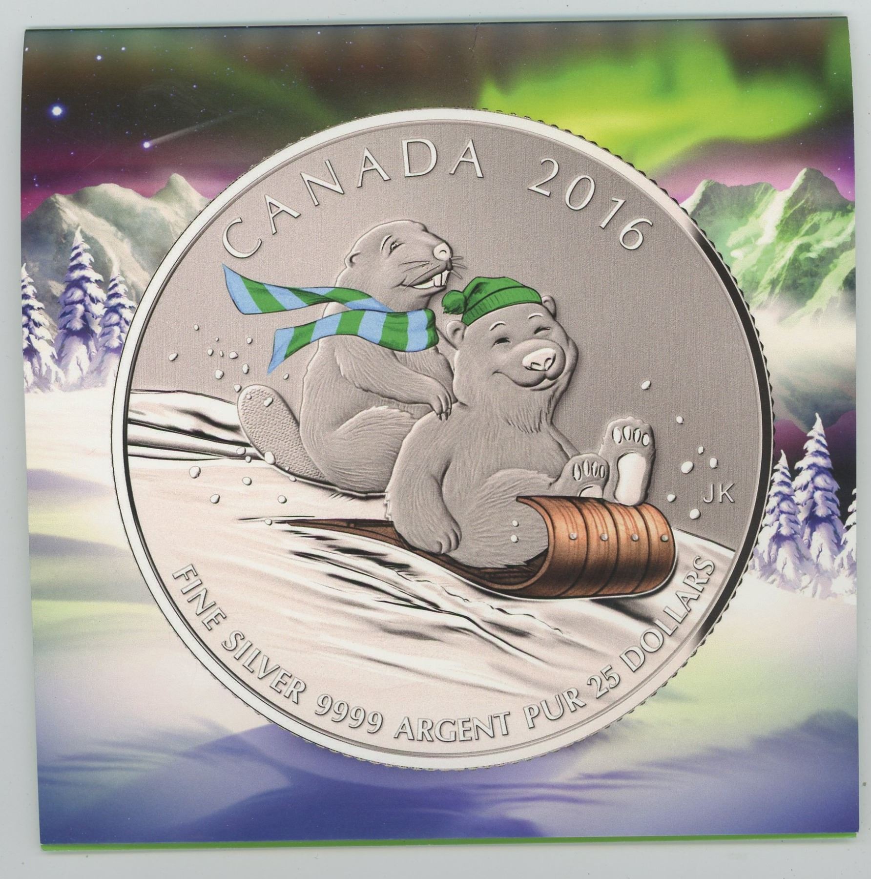 2016 $25 Winter Fun COLOURED 99.99% Silver