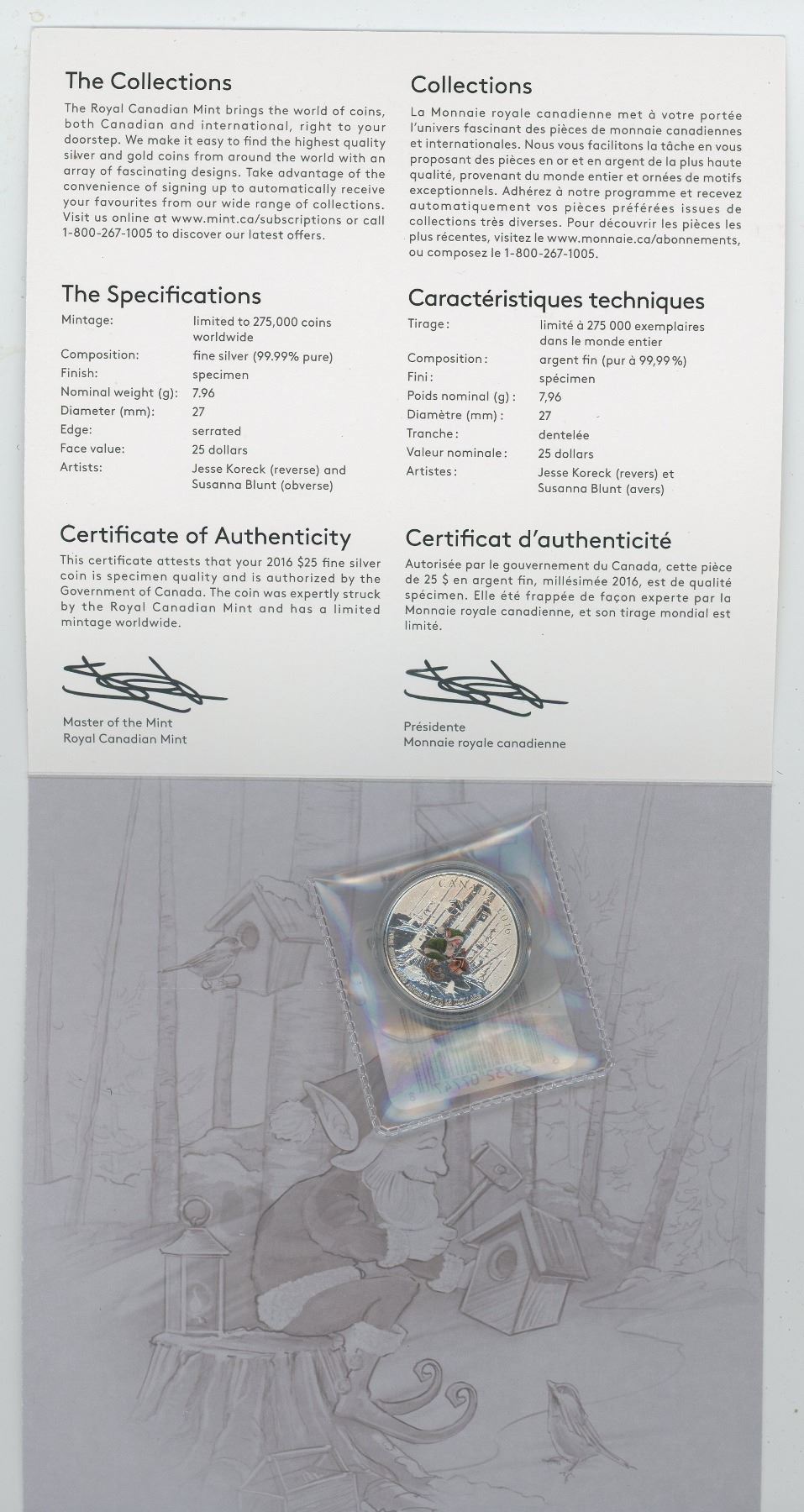 2016 $25 Woodland Elf COLOURED 99.99% Silver