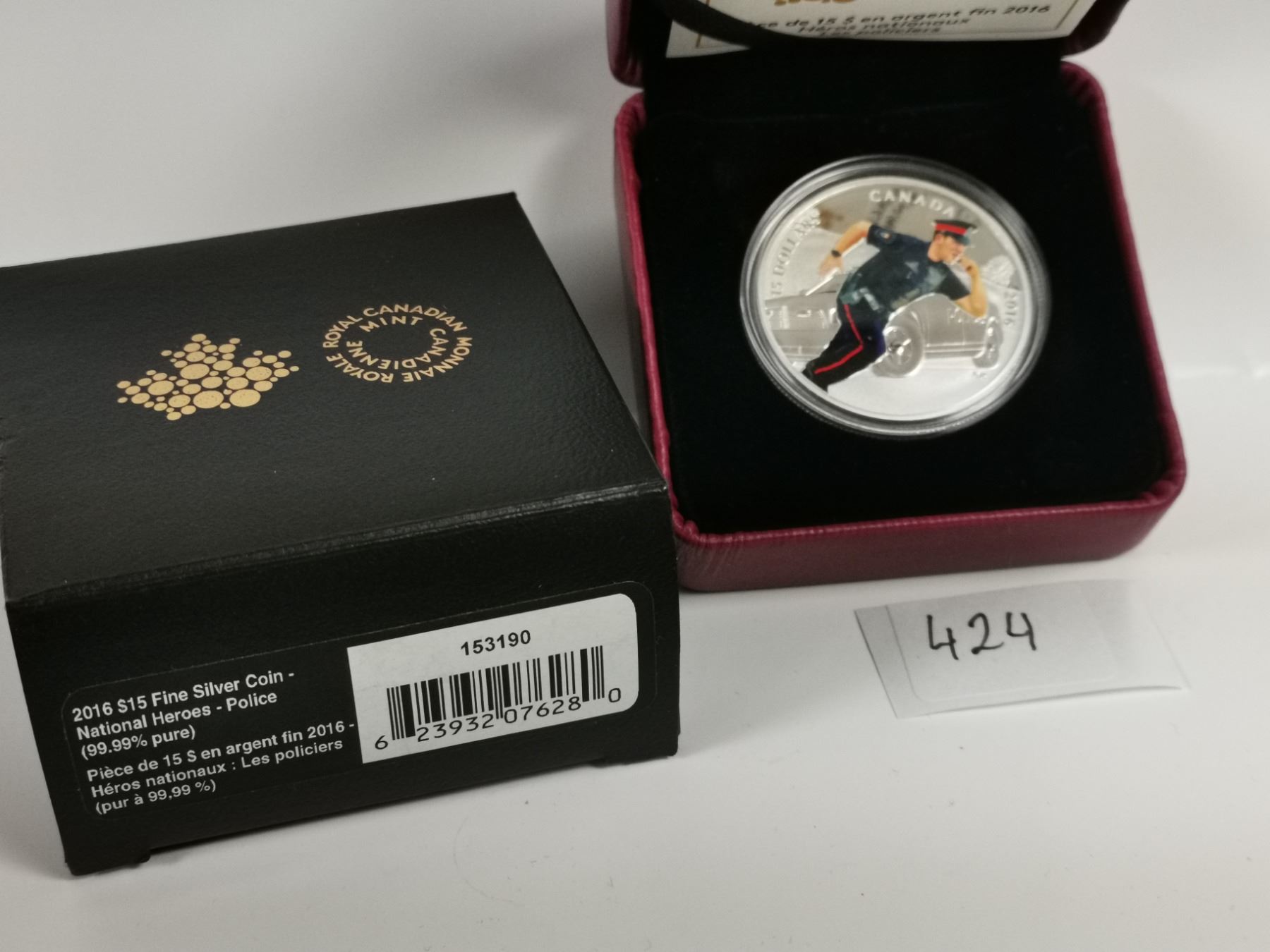 2016 National Heroes - Police, Canadian 15 dollar fine silver coin