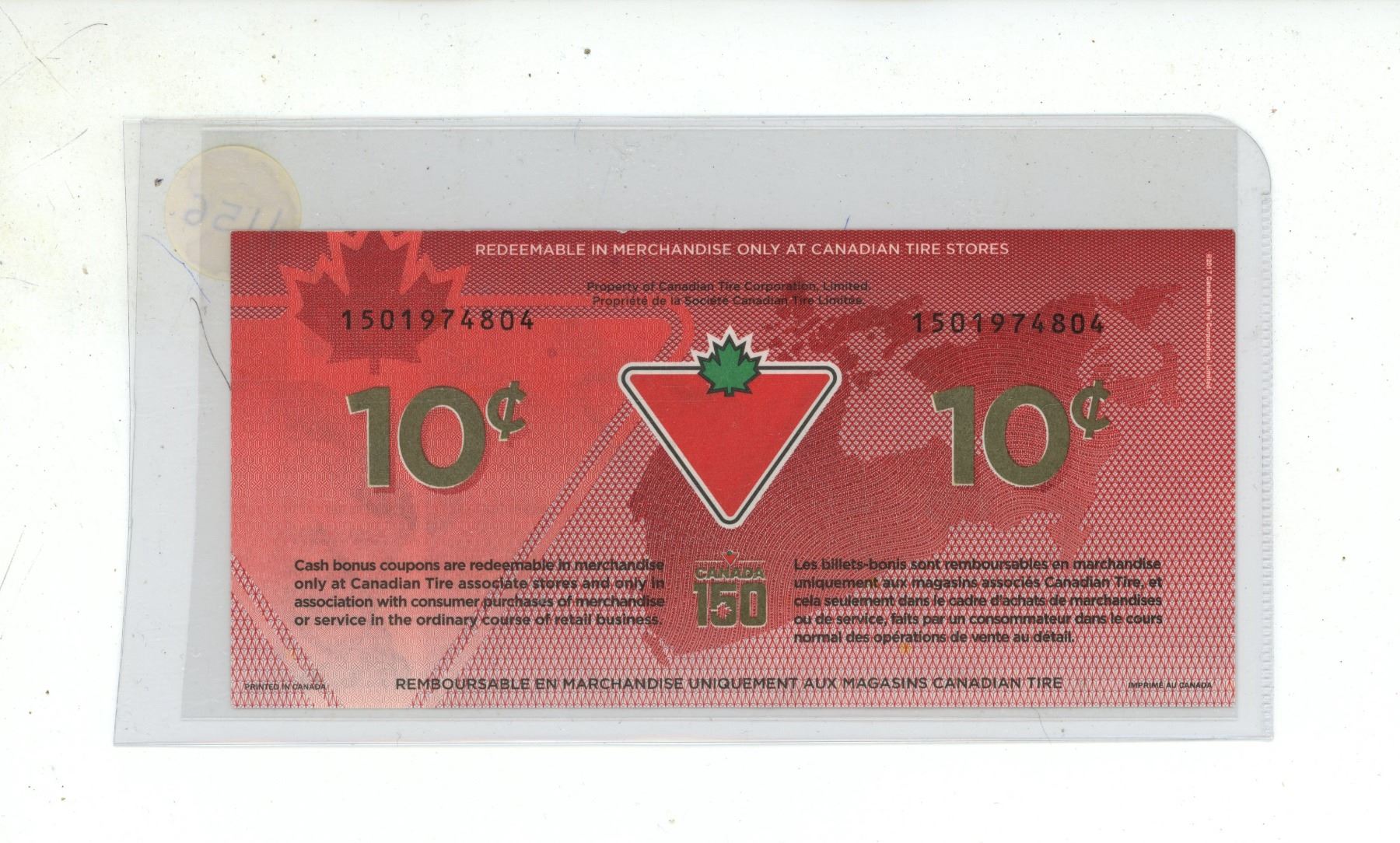 2017 10 Cents Canadian Tire Money. Celebrates Canada’s 150th Anniversary. AU.