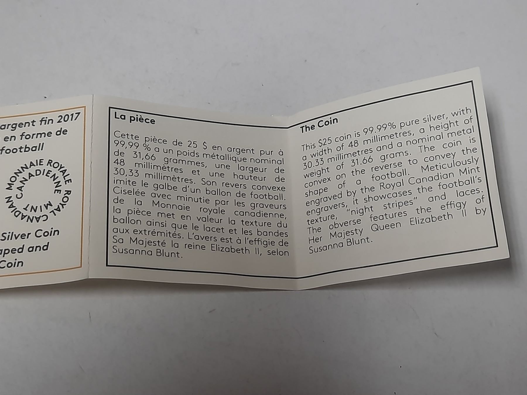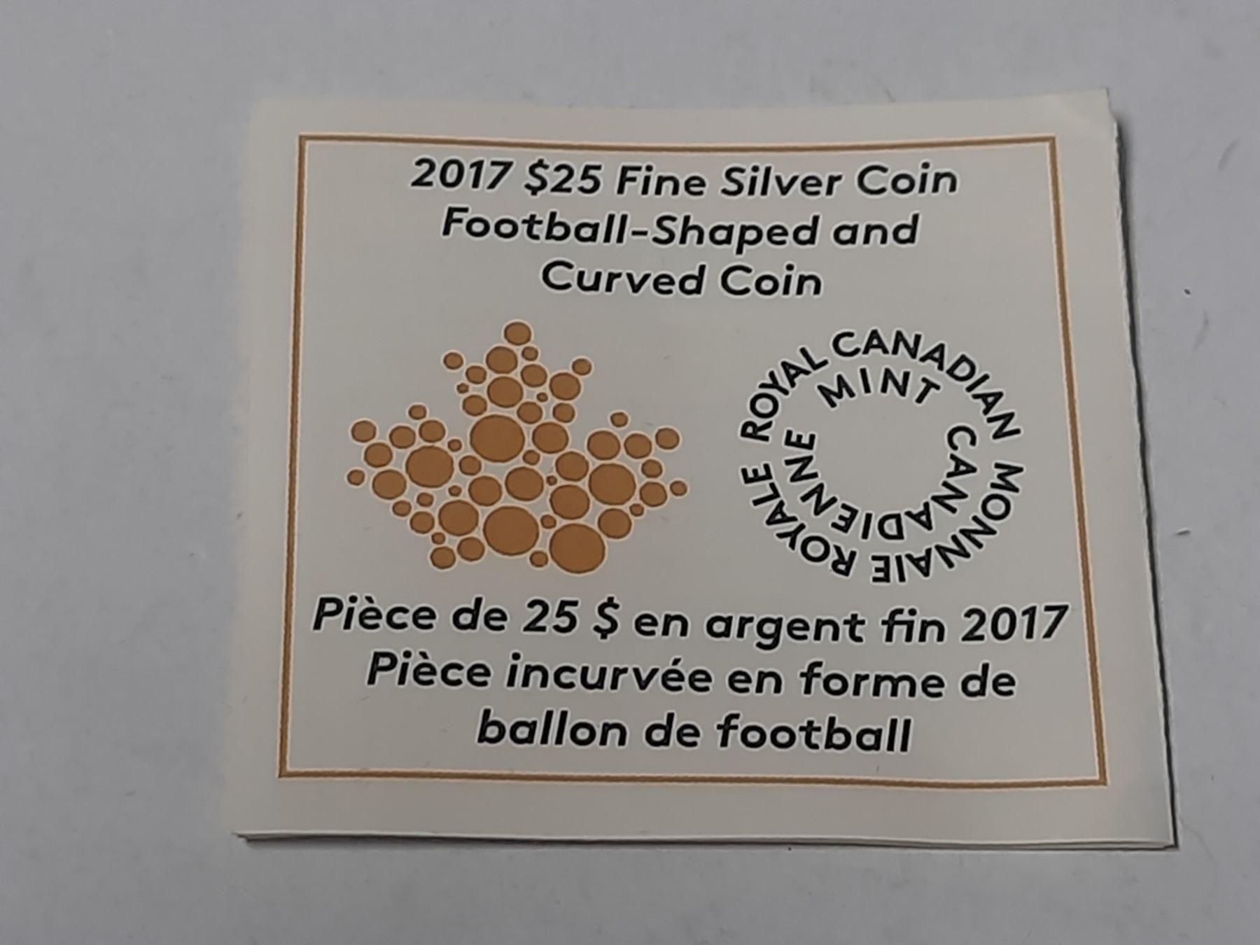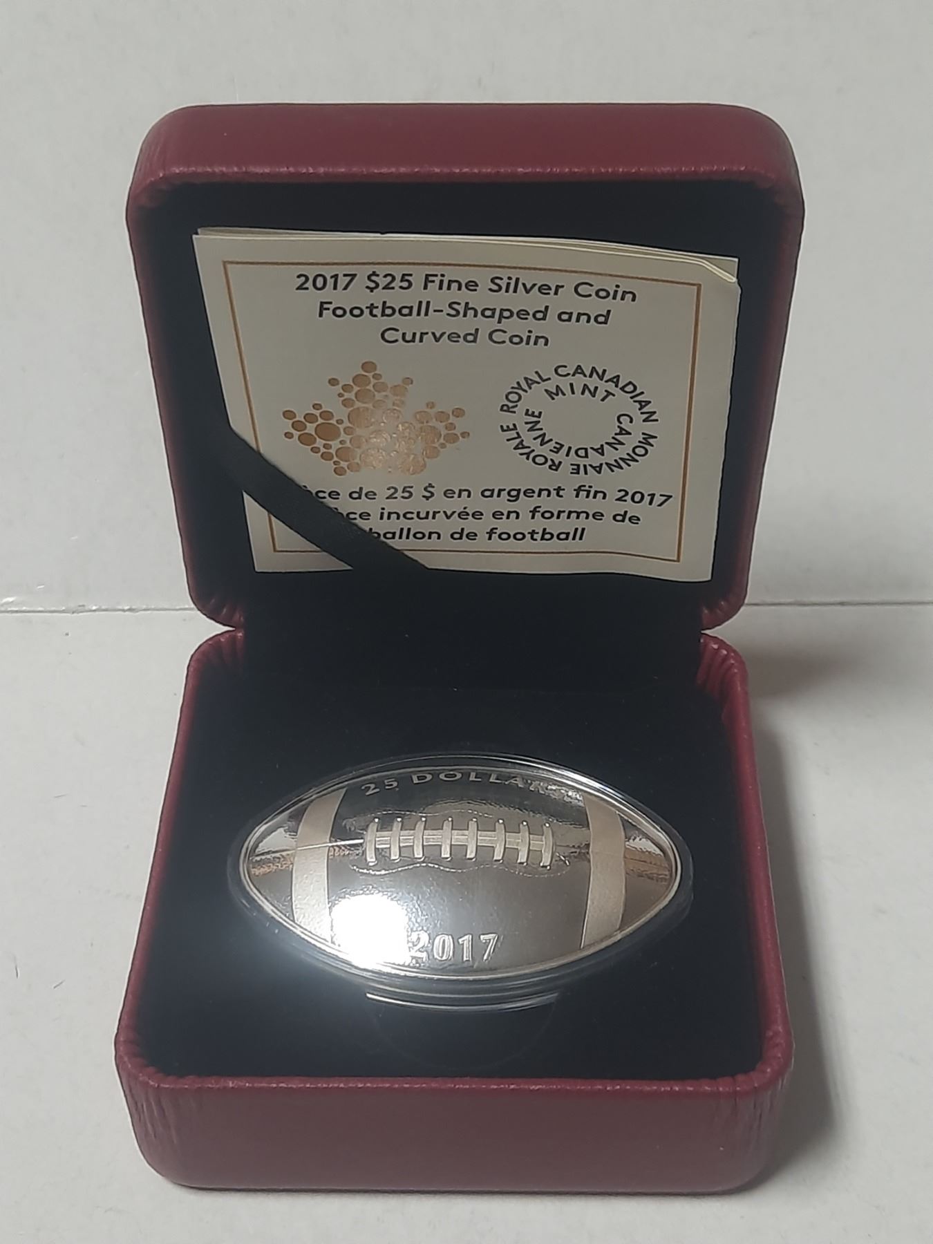 2017 $25 Fine Silver Coin Football-Shaped and Curved Coin.