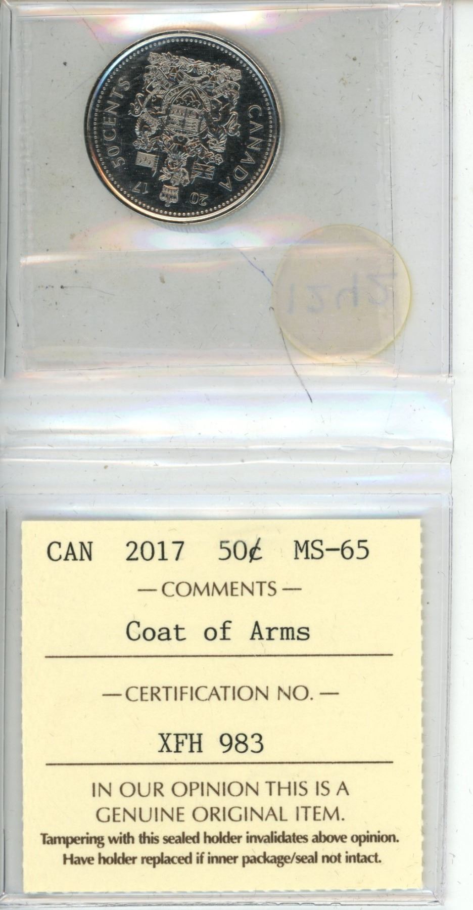 2017 Canadian Fifty Cents - ICCS MS-65 Coat Of Arms