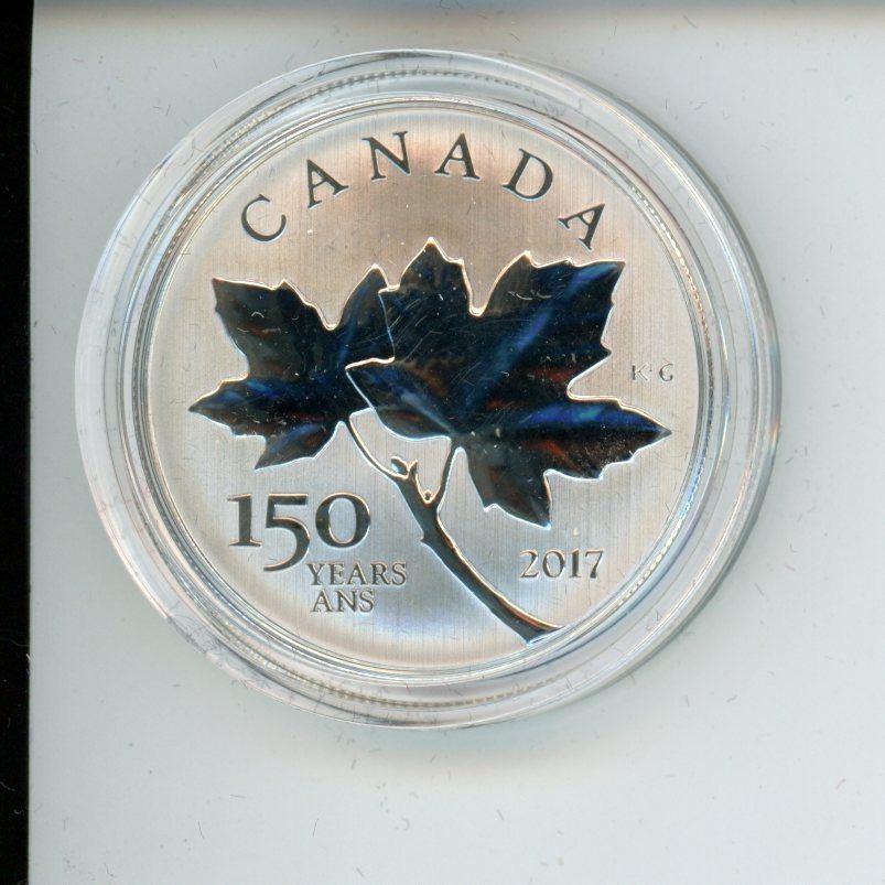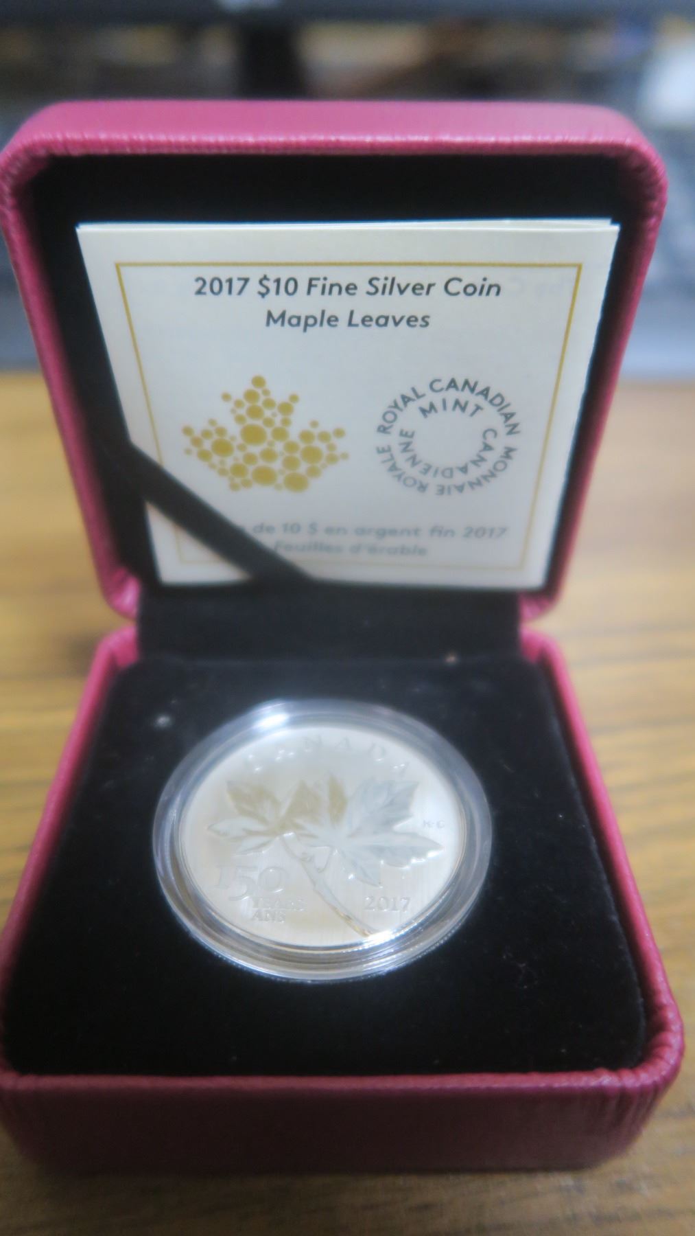 2017 Maple Leaves $10. Large 99.99% pure Silver depicts the first Canadian Small Cent issued in 1937. Specimen. Housed in its original case of issue.