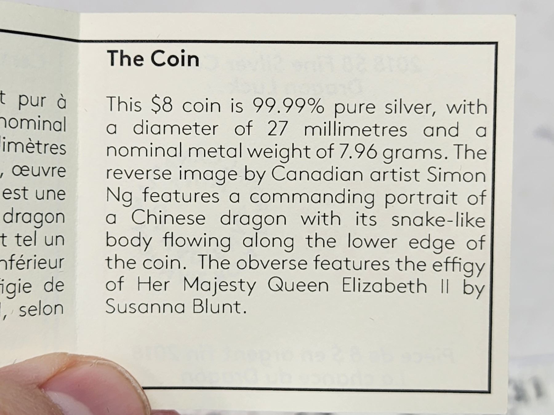 2018 Canadian 8 dollar, .999 silver coin - Dragon Rock