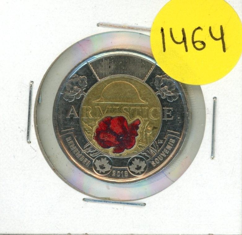 2018 Canadian Coloured Two-dollar coin ("toonie") commemorating the 100th anniversary of the Armistice of 1918.