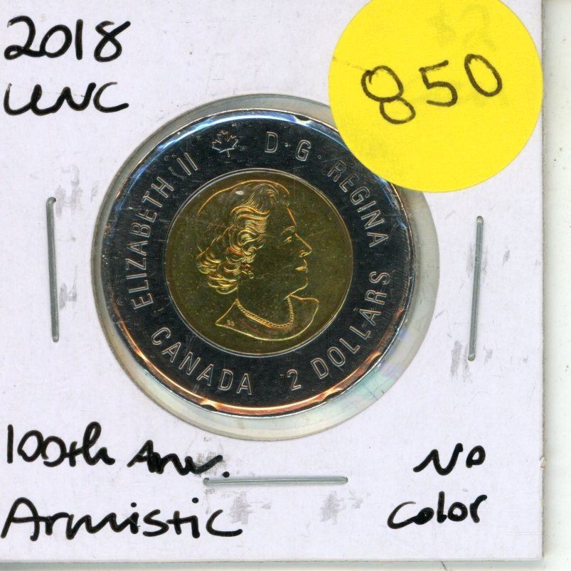 2018 UNC. Canadian Two Dollar - Armistice No Colour
