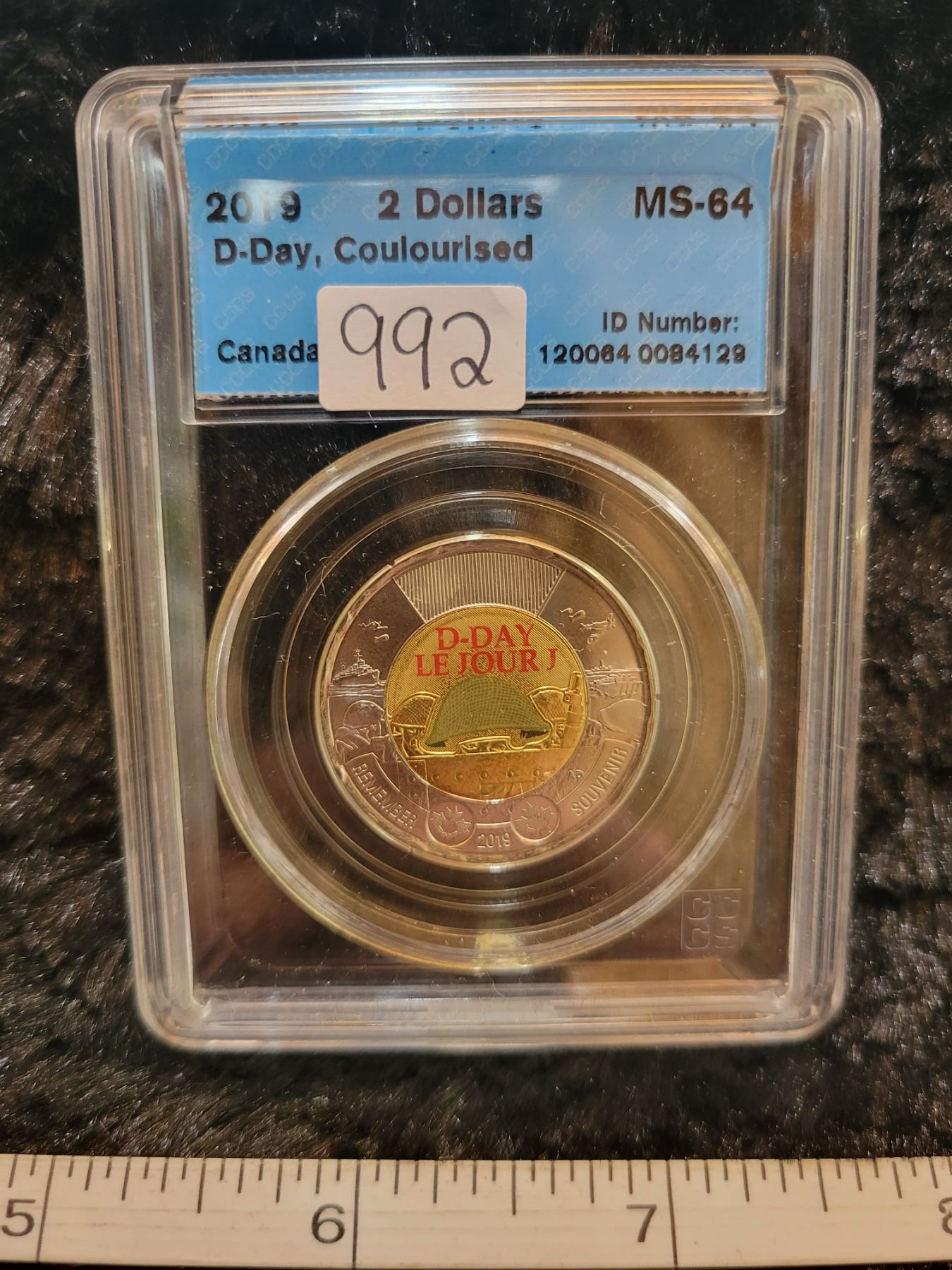 2019 2 dollars Two Dollars $2.00 toonie 'D-Day' Colourised CCCS MS-64