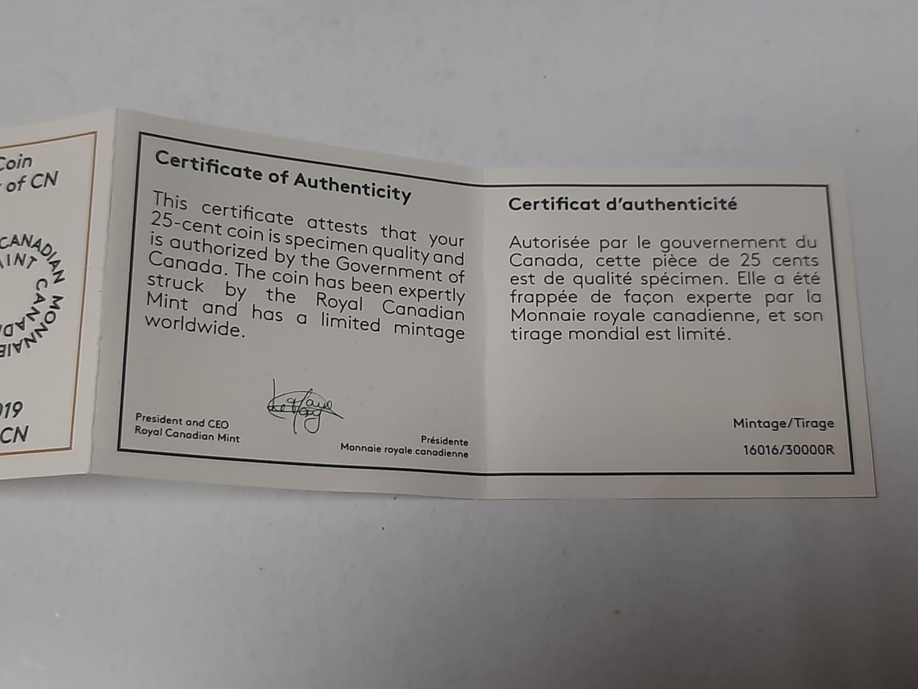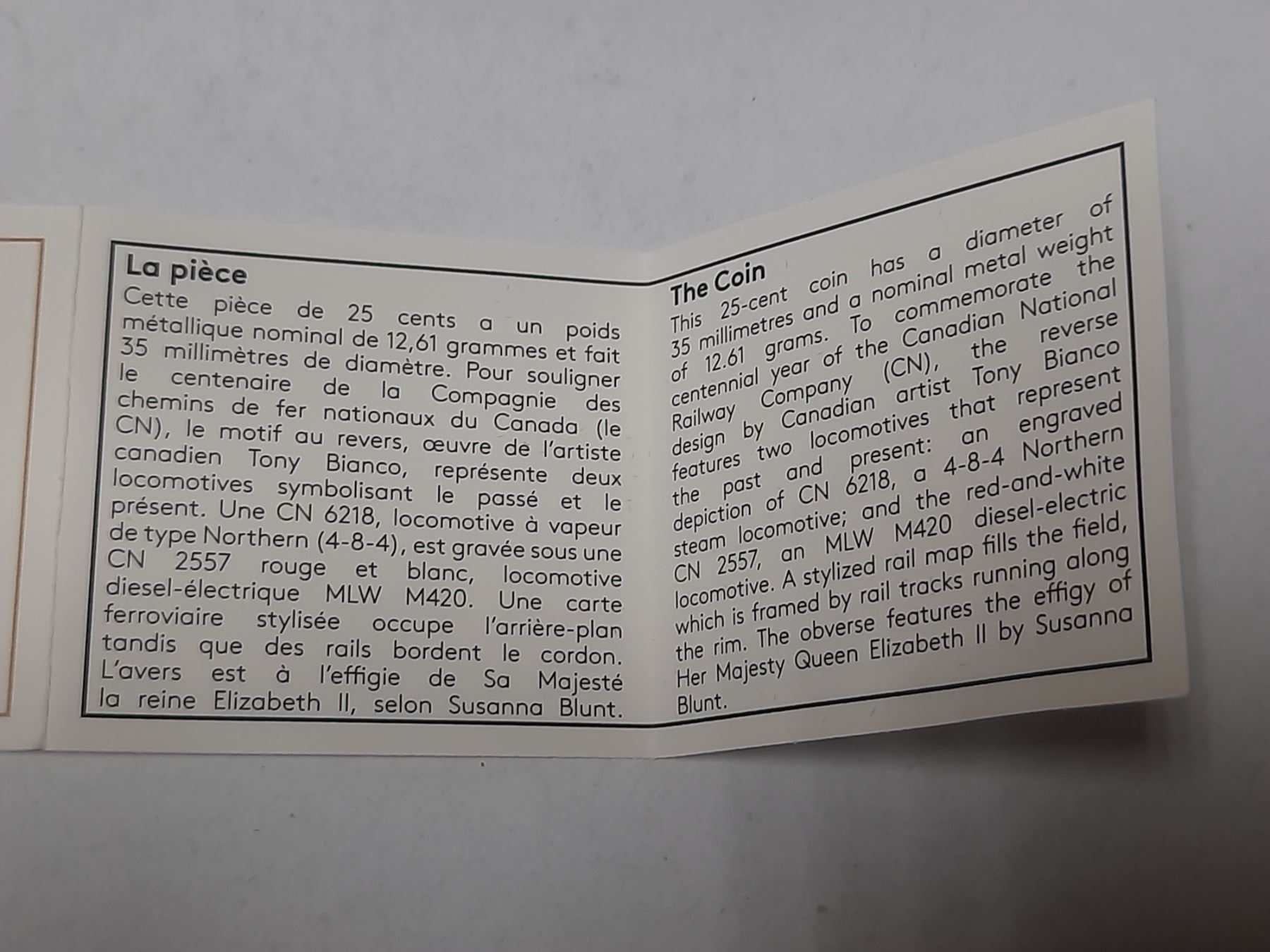 2019 25-cents coloured coin - 100th Anniversary of CN